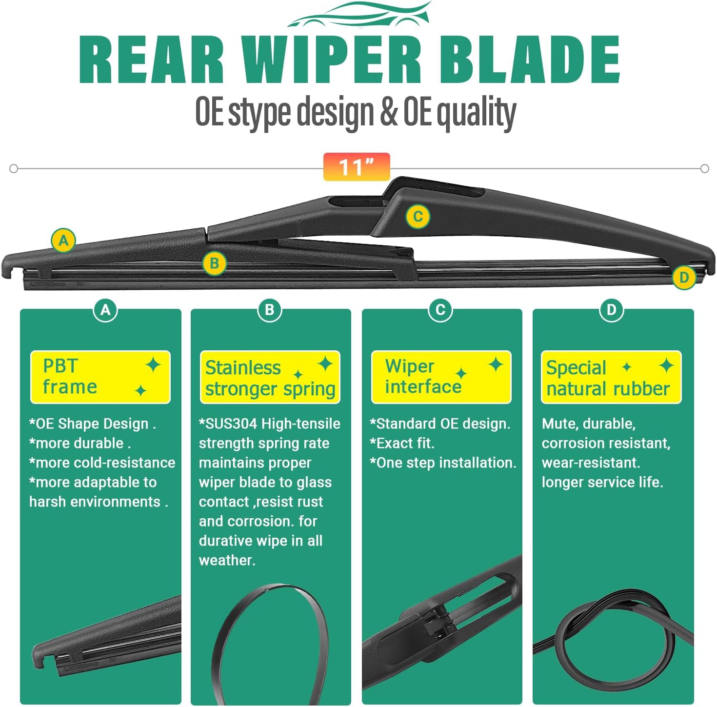- [Super Clear Wipers]: High-quality rubber blade ensures efficient and streak-free wiping.