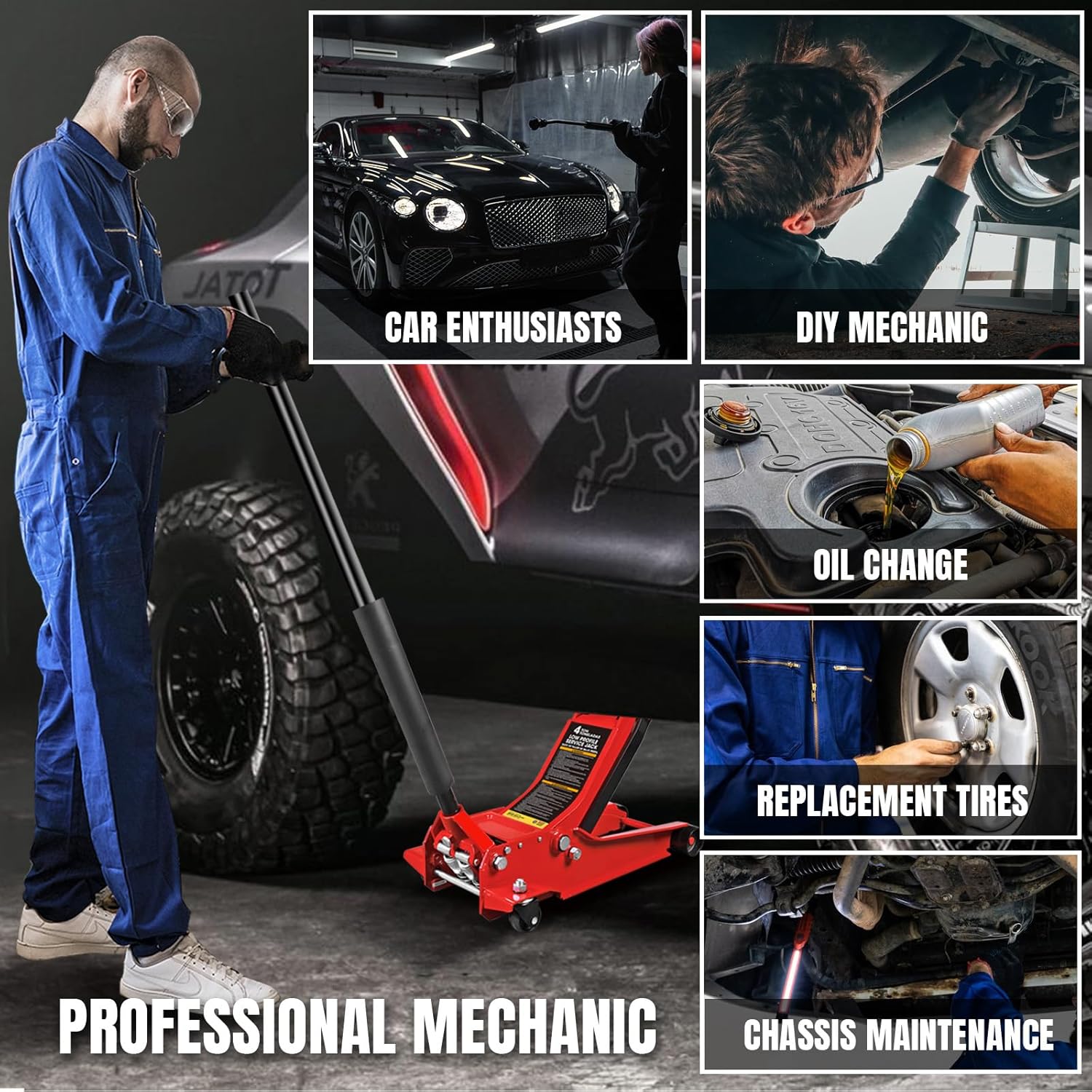 - Meet your needs: 4 Ton/8800lbs load capacity with 4"-20" lift range,BIG RED's 4 ton floor jack is suitable for most vehicles, the car lift for home garage is easy for Professionals and DIY users to change oil and repair cars.