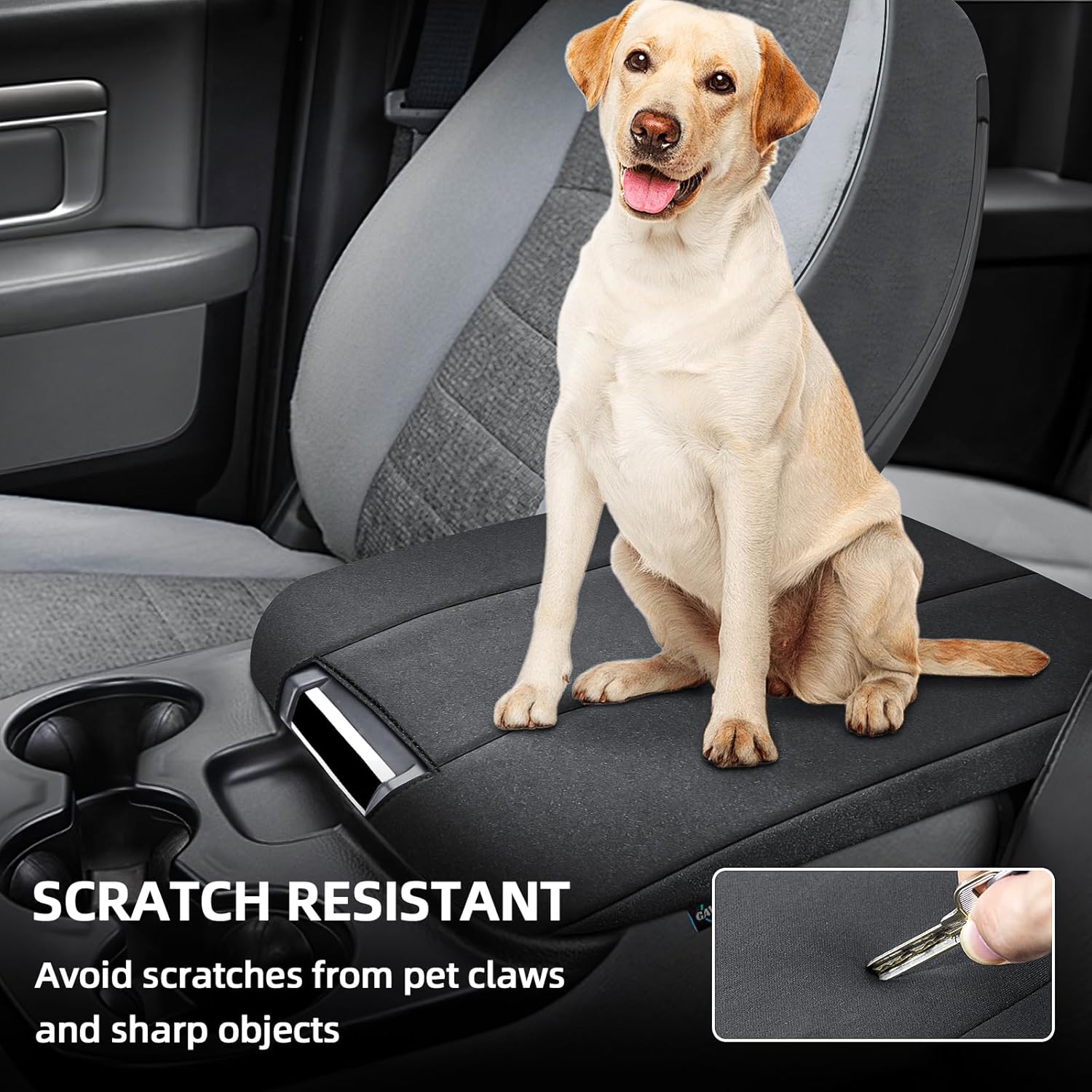- 【All-Round Protection】The jump seat armrest cover offers comprehensive protection for your center console, shielding it from pet scratches, and daily wear. The thick material ensures long-lasting use