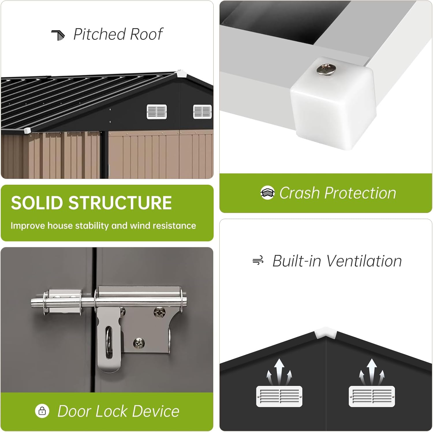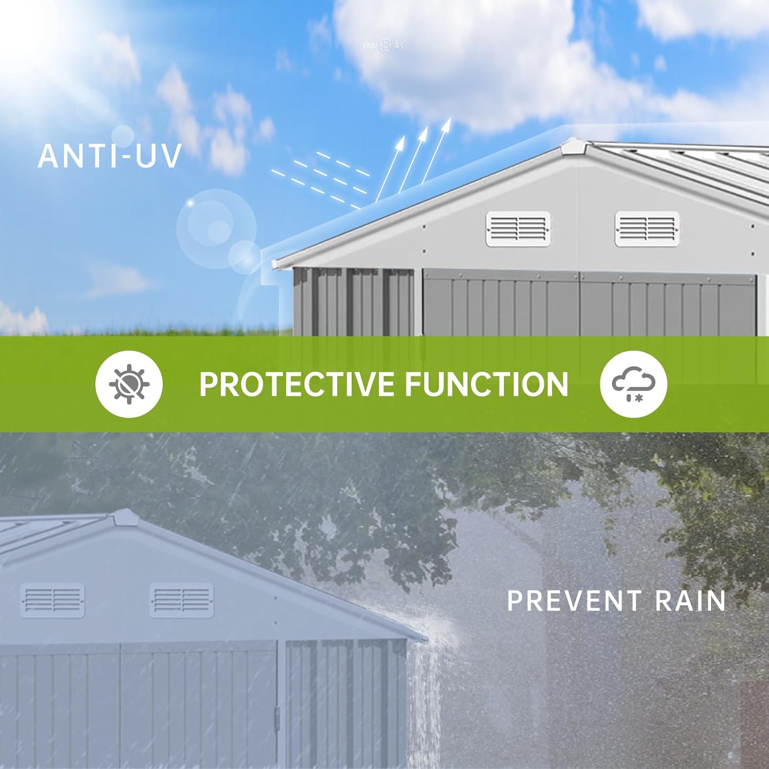 - 【Durable Sturdy Construction】Crafted from thicker galvanized steel and a more durable frame, this metal storage shed offers advanced corrosion resistance and durability, providing all-weather protection against wind, rain, and UV rays.
