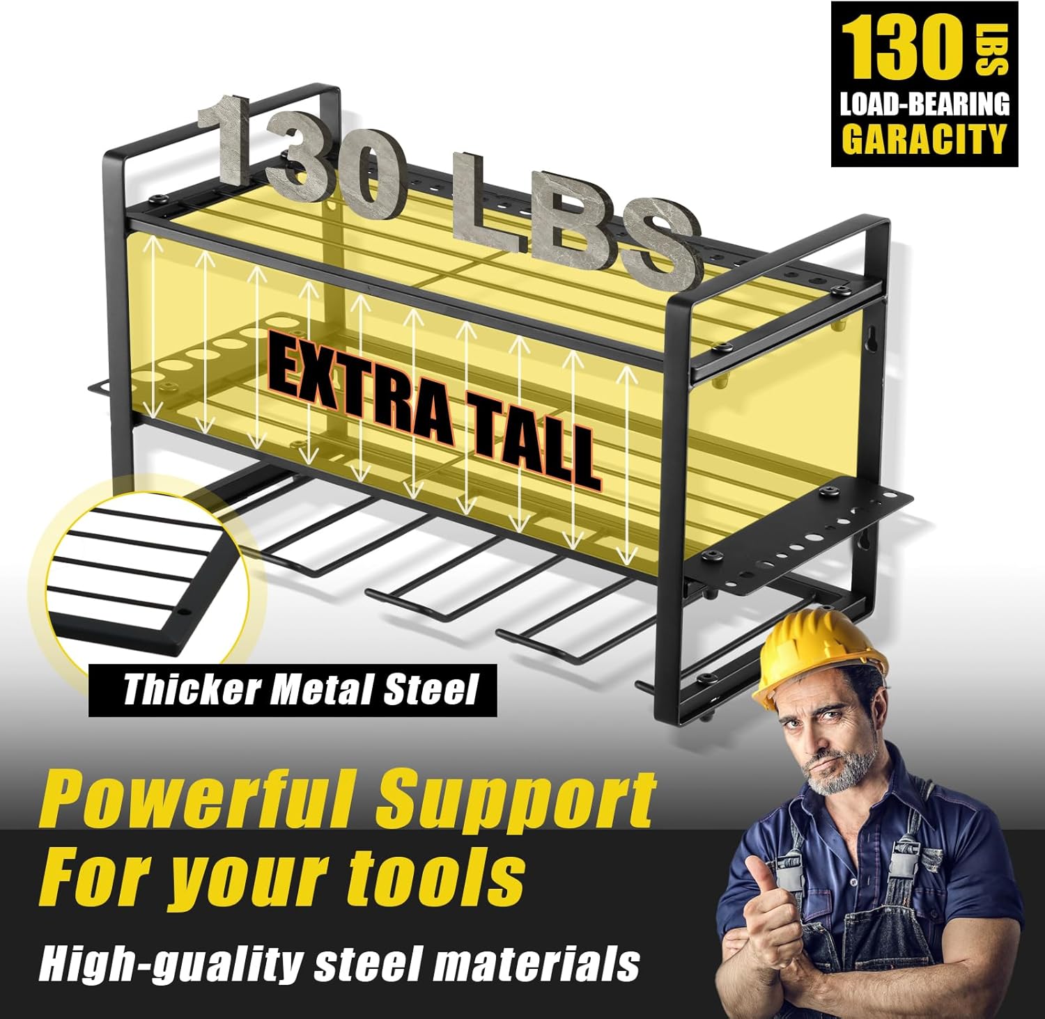 - Heavy-Duty: garage organization made of thick steel with hexagonal expansion bolts, each tier supports up to 130 lbs, ensuring stable support and long-lasting use