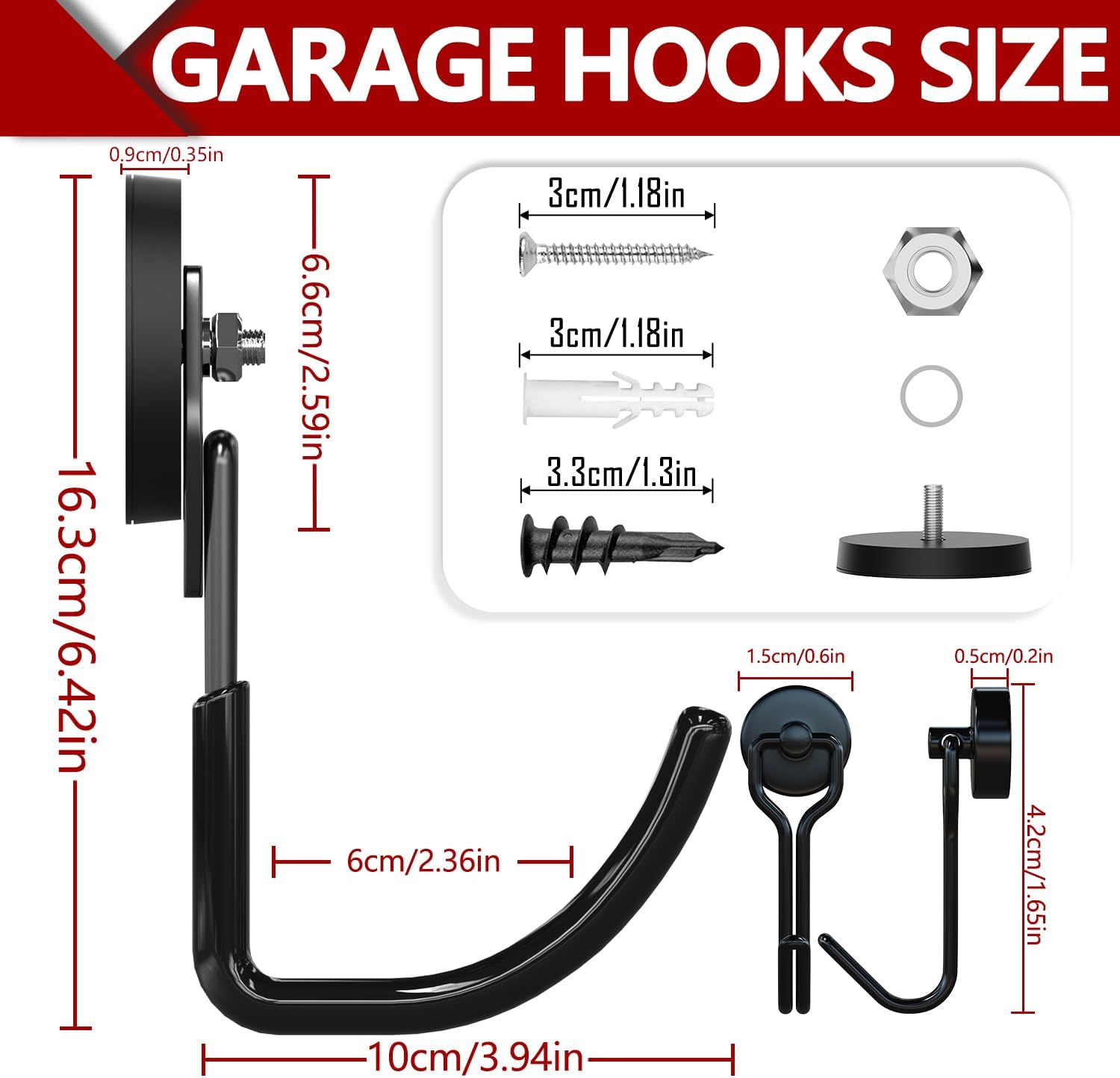 - Easy To Install Strong Heavy Duty Hooks: 2 usage options available: (1) heavy duty magnetic hooks for garage can be adsorbed on any metal surface. No tools, drilling, or screws are required for installation, ensuring no damage to the surface. (2) Alternatively, you can remove the magnet and use the garage storage hooks independently. For storing heavier tools, we provide sturdy screws that can be used to securely install the heavy duty hooks for garage on any wall surface