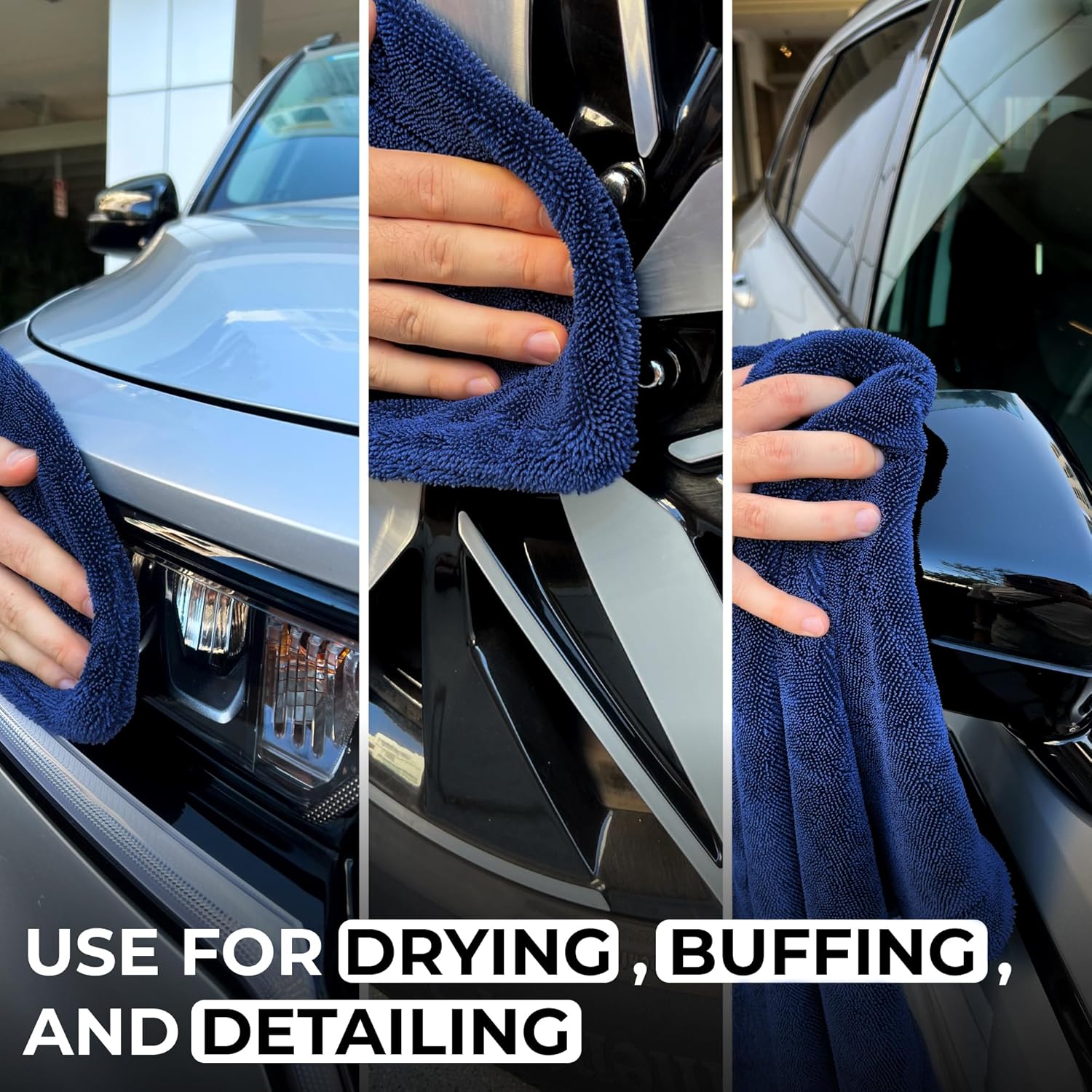 - Long-Lasting Durability Promise - Built to last with premium twisted-loop microfiber construction that maintains its absorbency wash after wash. These car drying towels outperform any standard car wash towel, delivering professional results at home and making them an essential addition to your car care arsenal for years of reliable service.