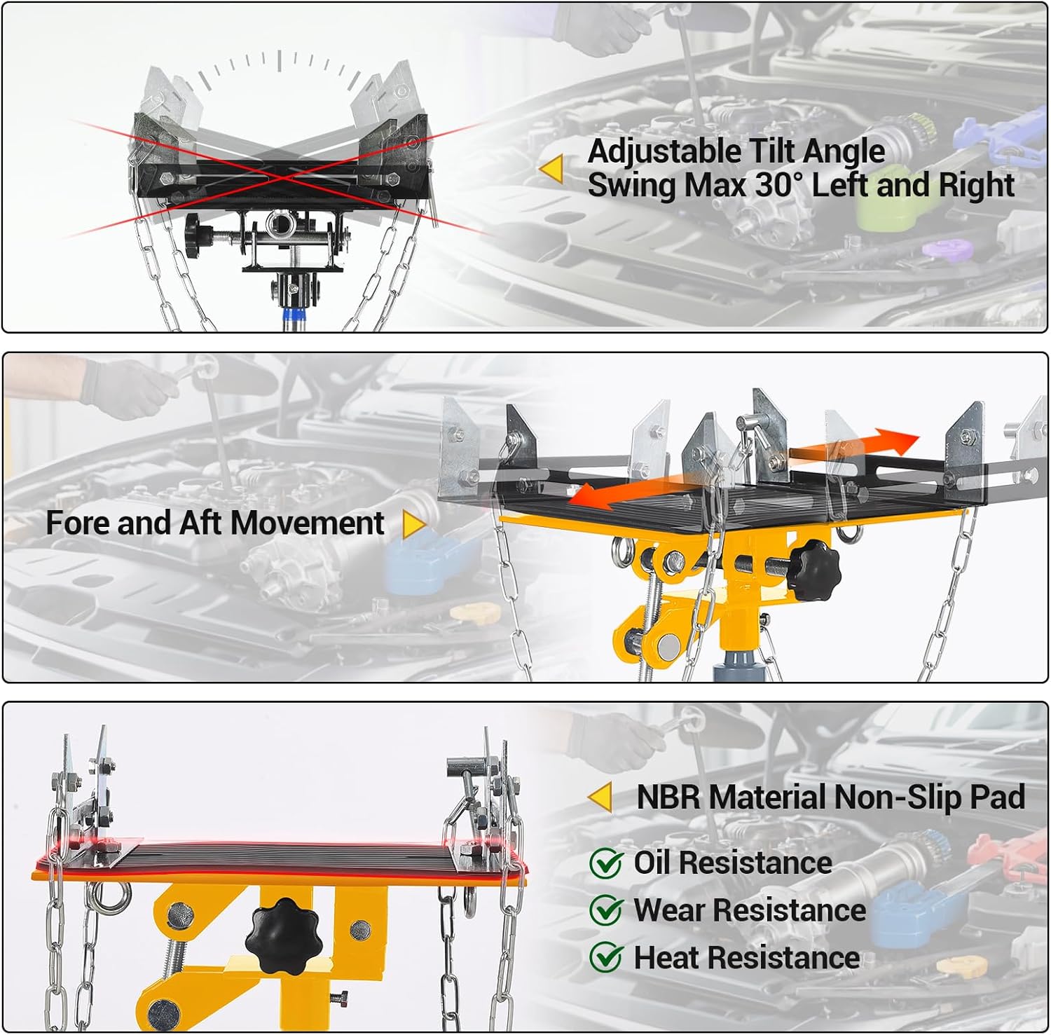 - 【Stable & Precise Control】- Our dual hydraulic lifting system utilizes a foot pedal mechanism, providing superior control compared to manual options. When the handle is released, the foot pedal enables slow and controlled descent of the transmission, ensuring precise positioning during repairs and minimizing the risk of damage to components.