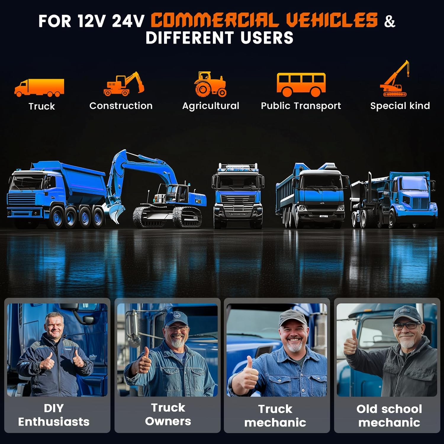 - 【Wide Compatibility】HD430 supports 12V 24V trucks, equipped with diesel connectors (CAT-9, Diesel 6pin & 9pin) and OBDII 16pin, with strong truck adaptation and compatibility. Product supports SAE J1939, SAE J1708, SAE J1850 PWM, SAE J1850 VPW, ISO 14230-4, ISO 9141-2, ISO 15765-4, ISO 27145-4 truck protocols, provides complete scan & fast scan, and available in English and Spanish, it is suitable for DIY enthusiasts, old-school mechanics, truck owners or small repair shops.