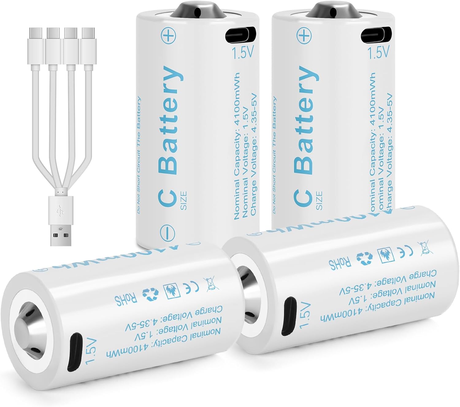 Rechargeable Lithium C Battery 4 Pack, Batteries c Size,Long Lasting1.5V C Batteries Rechargeable with 4 in 1 USB-C Charge Cable for Television Remote, Flashlights