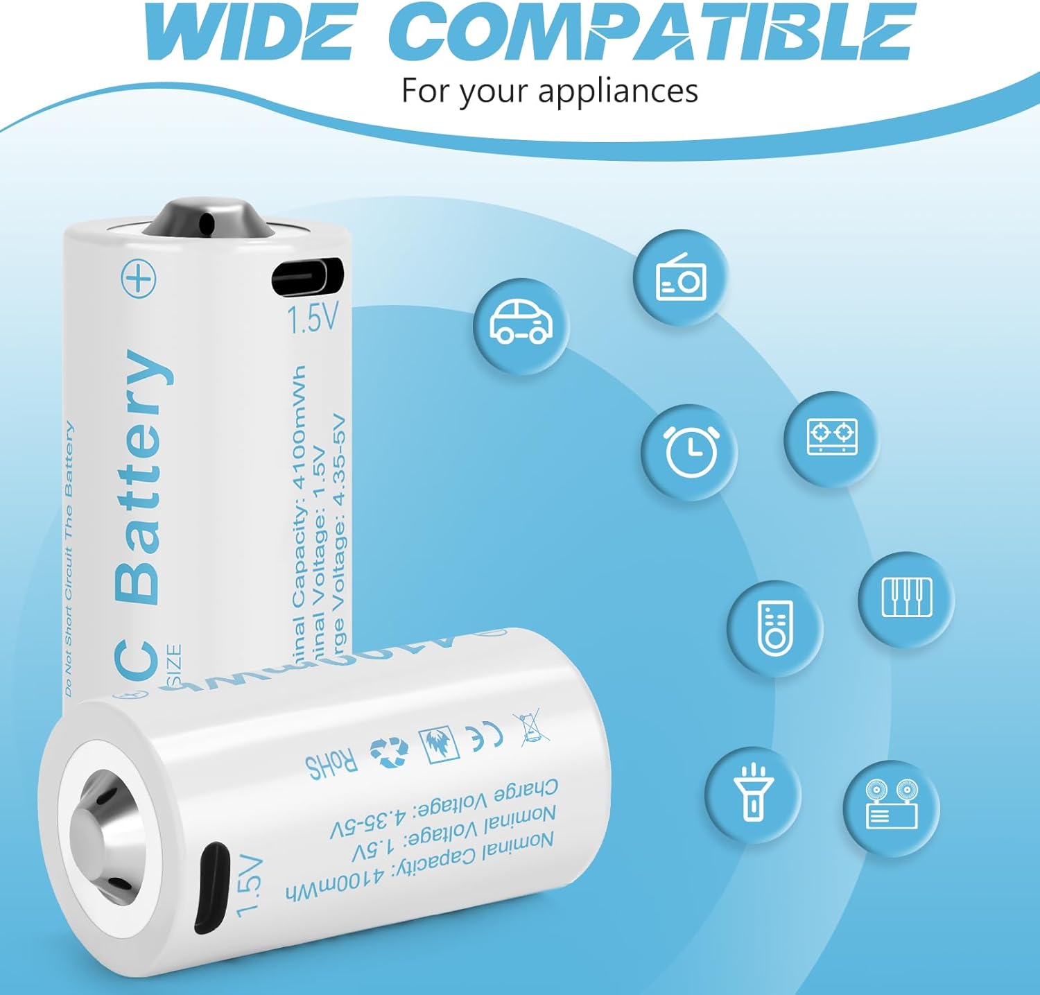 - 【1.5V Constant Voltage Output】 high capacity c batteries rechargeable has long-lasting, continuous constant voltage output. Very suitable for some high-power devices such as electric toys, clocks, flashlights, and more