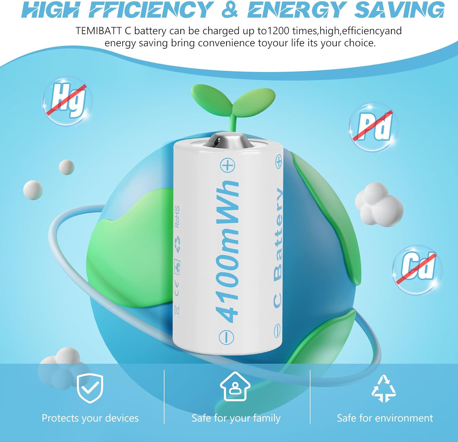 - 【ECO-FRIENDLY RECHARGEABLE DESIGN】With the ability to be recharged of 1000, these C-type lithium batteries are mercury, cadmium, and lead-free are an eco-friendly alternative to traditional disposable batteries