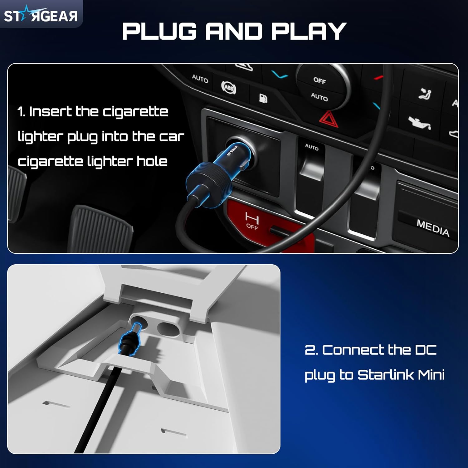 - Oustanding Starlink Mini Accessories: Plug this starlink mini 12v adapter to both the cigarette lighter socket and starlink mini dish, enjoy seamless internet access, enhancing convenience and efficiency from this starlink mini cable.