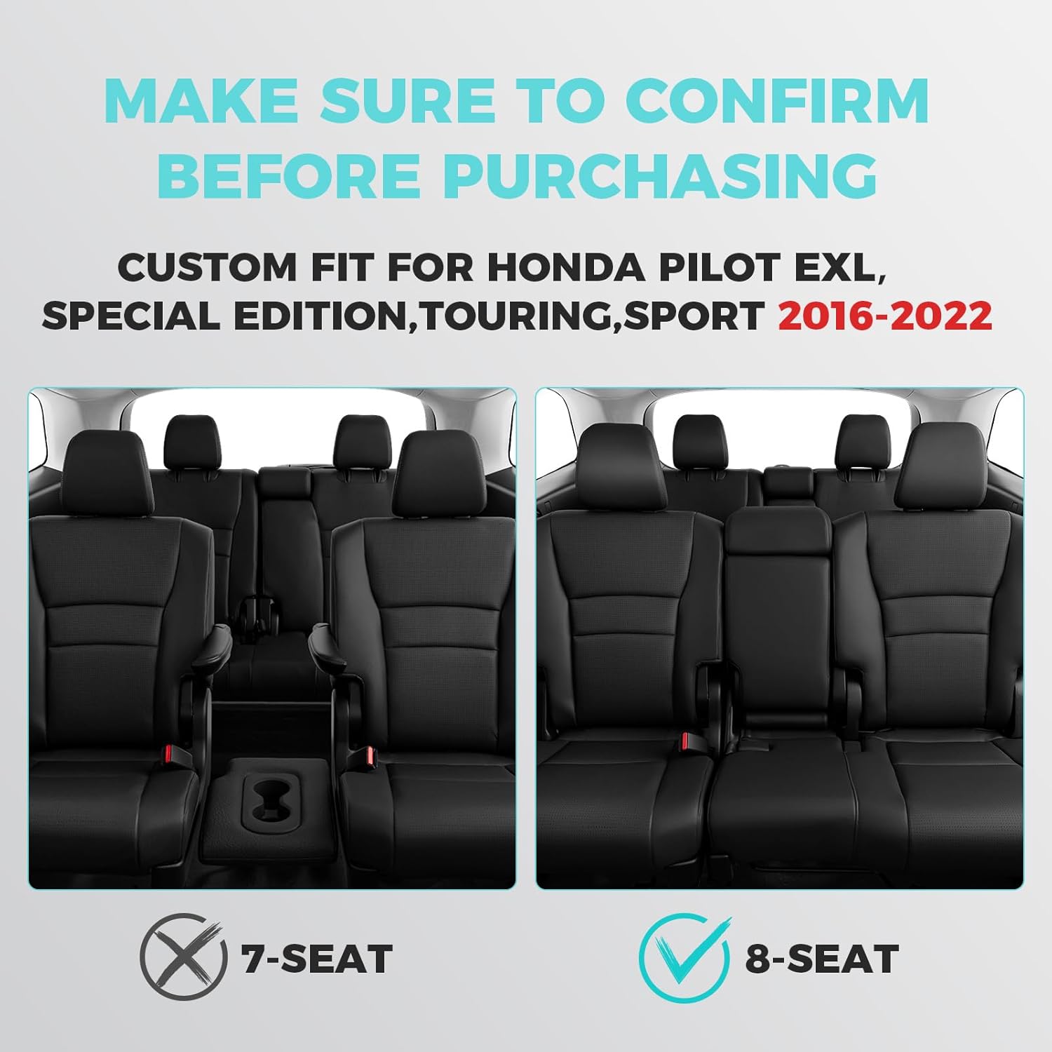 for Honda Pilot Seat Covers - Full Set Custom Car Seat Protectors Fit Pilot EX-L, Special Edition, Touring, Sport 2016 2017 2018 2019 2020 2021 2022-8 Seats,Faux Leather, Black