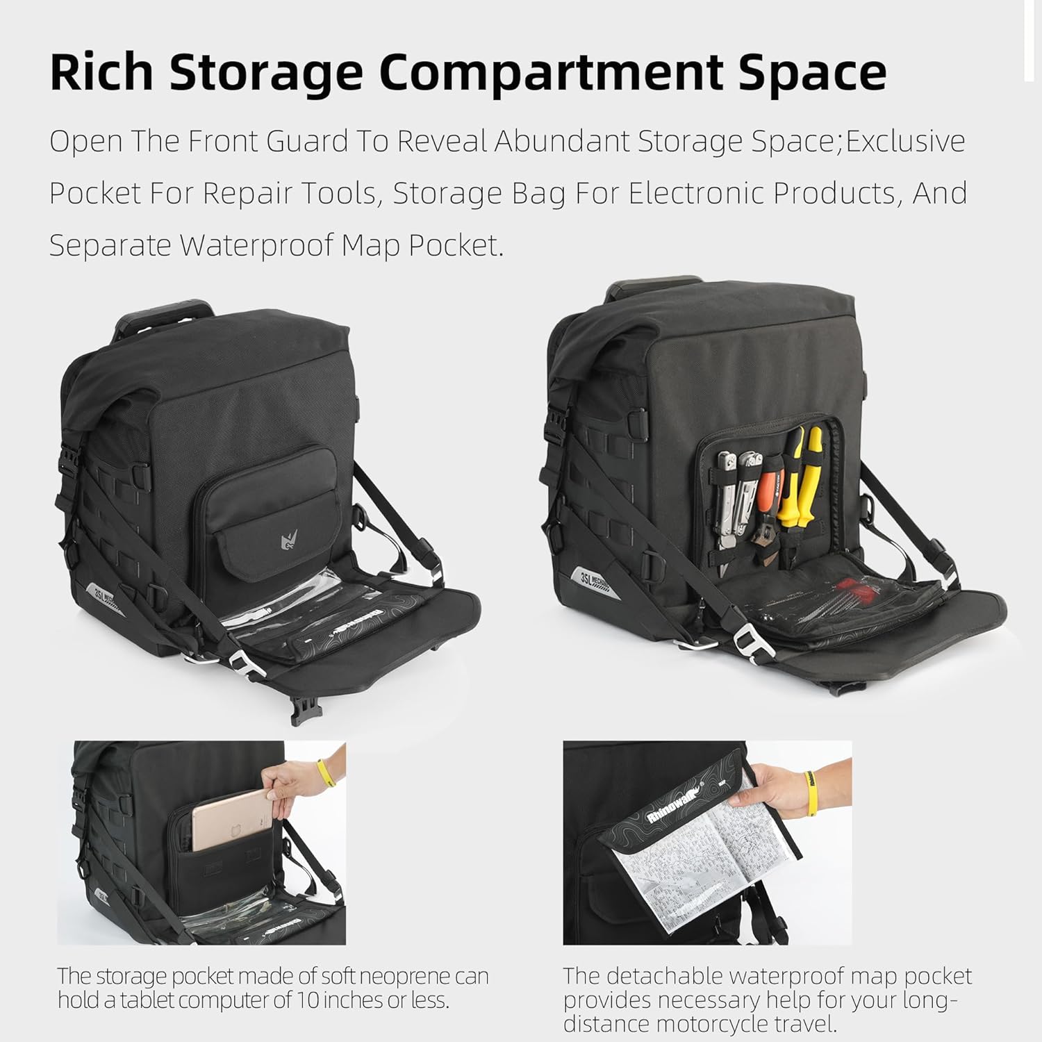 - [STURDY MATERIAL] The main material is 1680D encrypted and thickened oxford cloth + sub spandex, wear-resistant and tear-resistant. Fully waterproof inner bag can be removed and used as a handbag. Waterproof mesh material and seamless voltage technology are used to prevent rainwater intrusion safely. Back panel quick release adapter is made of reinforced nylon, the actual driving time on unpaved road is more than 5000 kilometers, and there is no deformation or breakage in many collisions