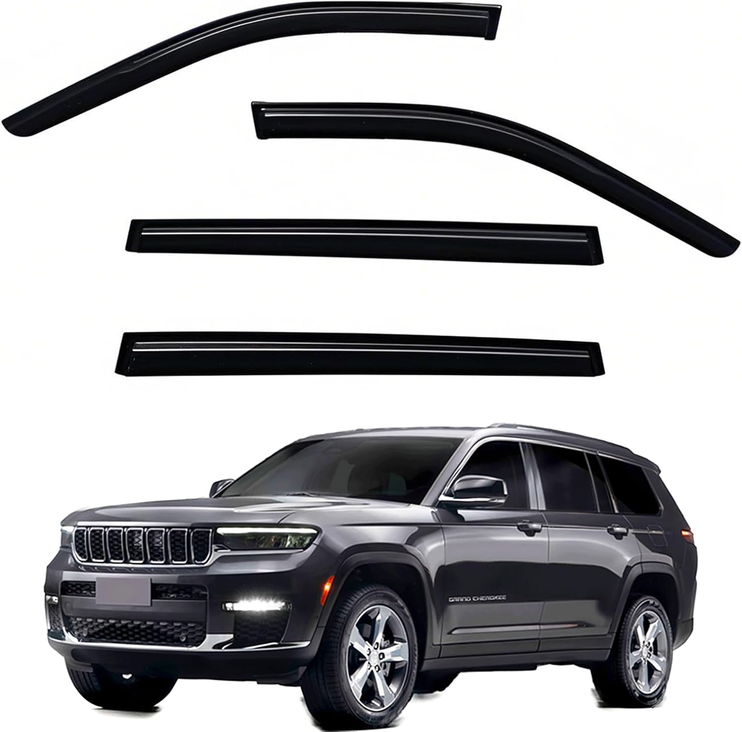 Window Visors Rain Guards fits 2021-2025 Grand Cherokee L, Out-Channel Window Wind Deflectors Vent Shades Accessories, Dark Smoke 4 Pcs, 2022 2023 2024 (only Grand Cherokee L)