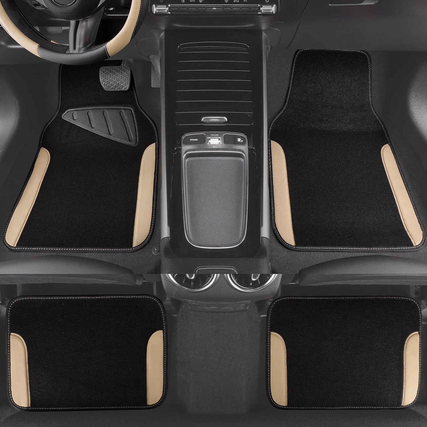 CAR PASS Waterproof Car Floor Mat, Universal Fit Car Mats with Driver Heel Pad, Leather Car Carpet, Anti-Slip Nibbed Backing Floor Mats for SUV, Vans,Sedan,Truck, Automotive Floor Mats (Black Beige)