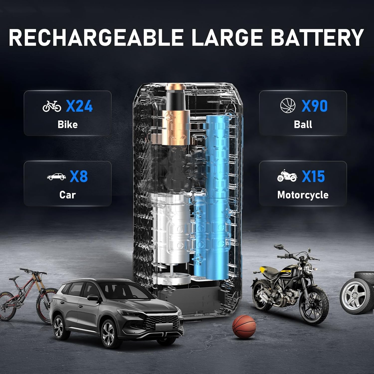 Tire Inflator Portable Air Compressor, Air Pump for Car Tires with Digital Pressure Gauge, 150PSI Rechargeable Battery, LED Light, Cordless Bike Tire Pump for Car, Motorcycle, Bicycle
