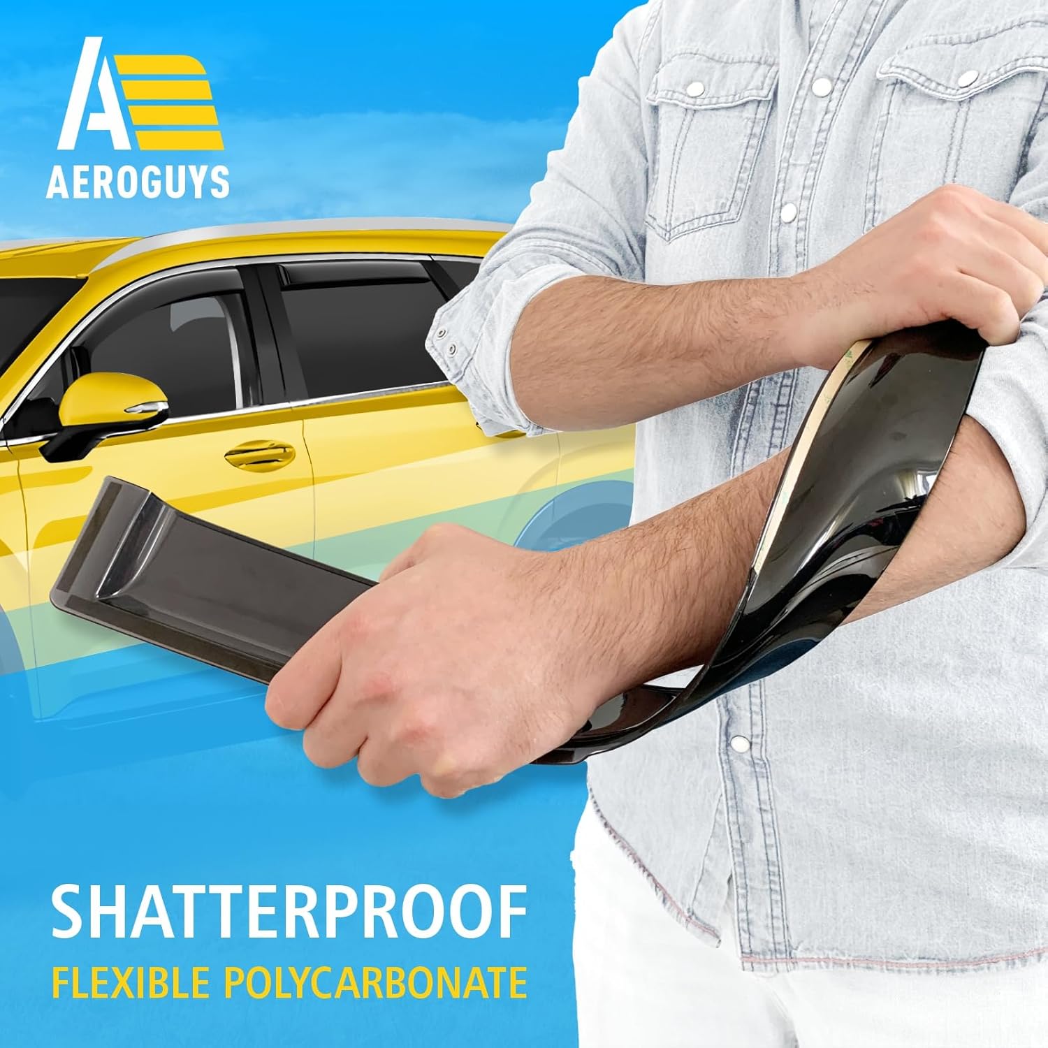 - Incredibly Durable AEROGUYS Auto Window Deflectors – They are made with strong and tough polycarbonate which is clear and scratch-resistant. They also provide UV protection making your ride more comfortable under all weather conditions.