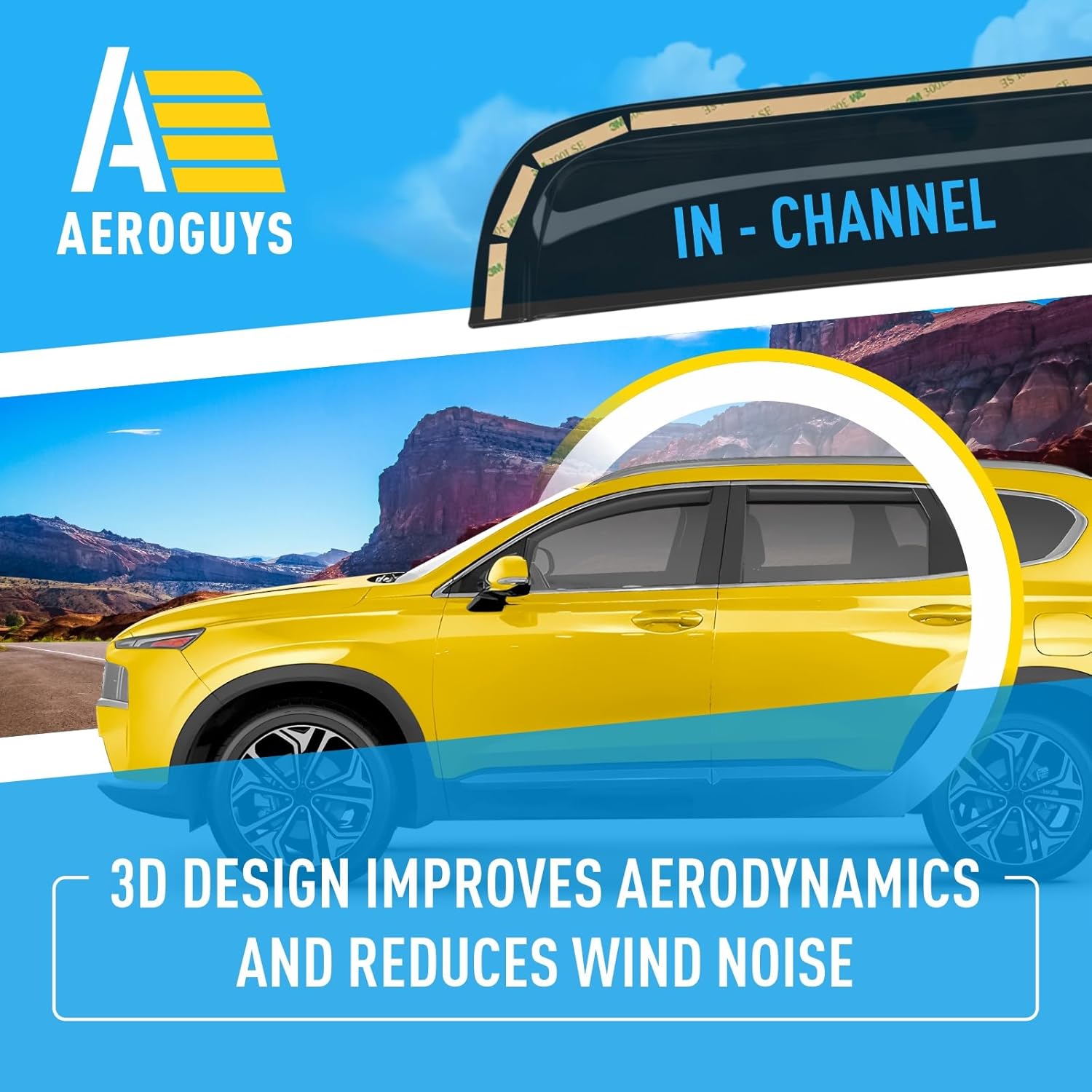 - No Tools Needed, Quick and Easy Assembly – These rain guards are very easy to fit. IN-CHANNEL INSTALLATION provides perfect fit for your car. Just slip it onto your car’s window and your job is done within minutes. There is no drilling or no tools required. Be sure that AEROGUYS window deflectors are water resistant, sun protective and will not bend, break or crack regardless of the weather conditions.