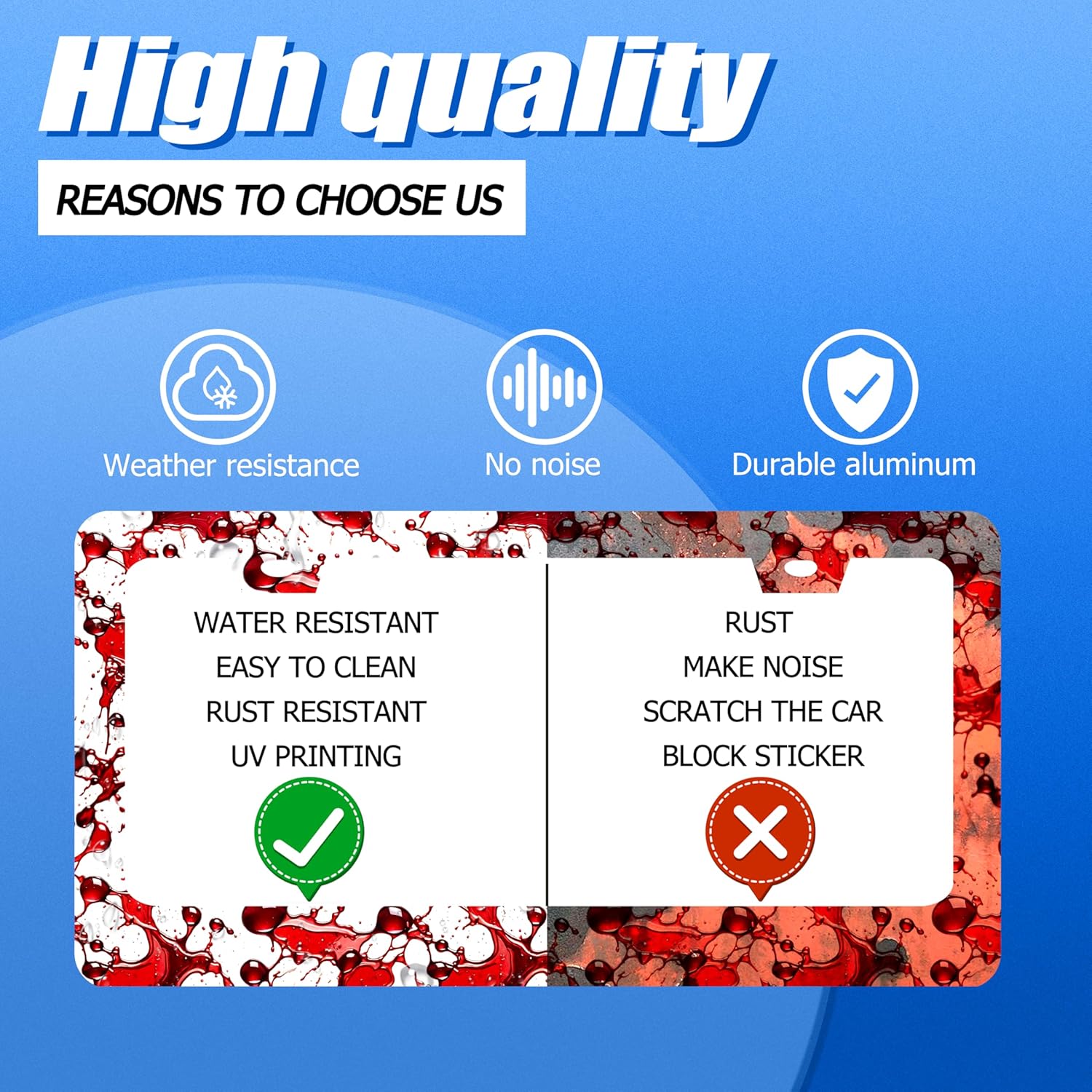 Scarry Blood Splattered License Plate Frame Halloween License Plate Stainless Steel Funny License Plate Holder Men Women Car Accessories Decoration With Screws Fits Standard Vehicles Size 12.3" x 6.3"