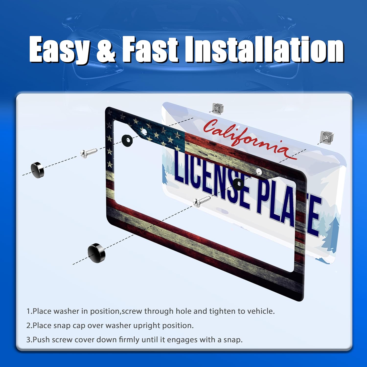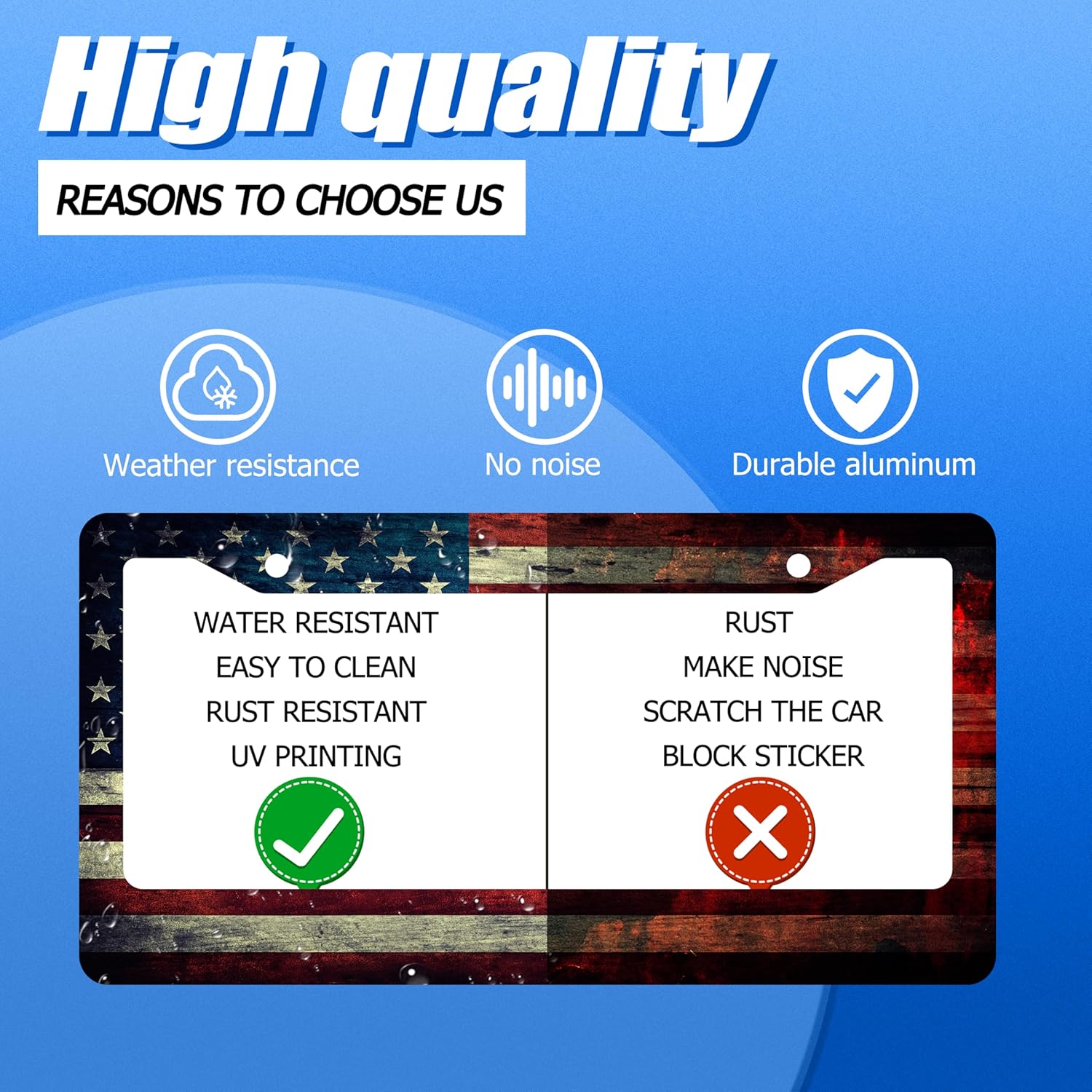 American Flag License Plate Frame Vintage USA Flag License Plate Stainless Steel Funny License Plate Holder Patriotic Car Accessories Decoration with Screws Fits Standard Vehicles Size 12.3" x 6.3"