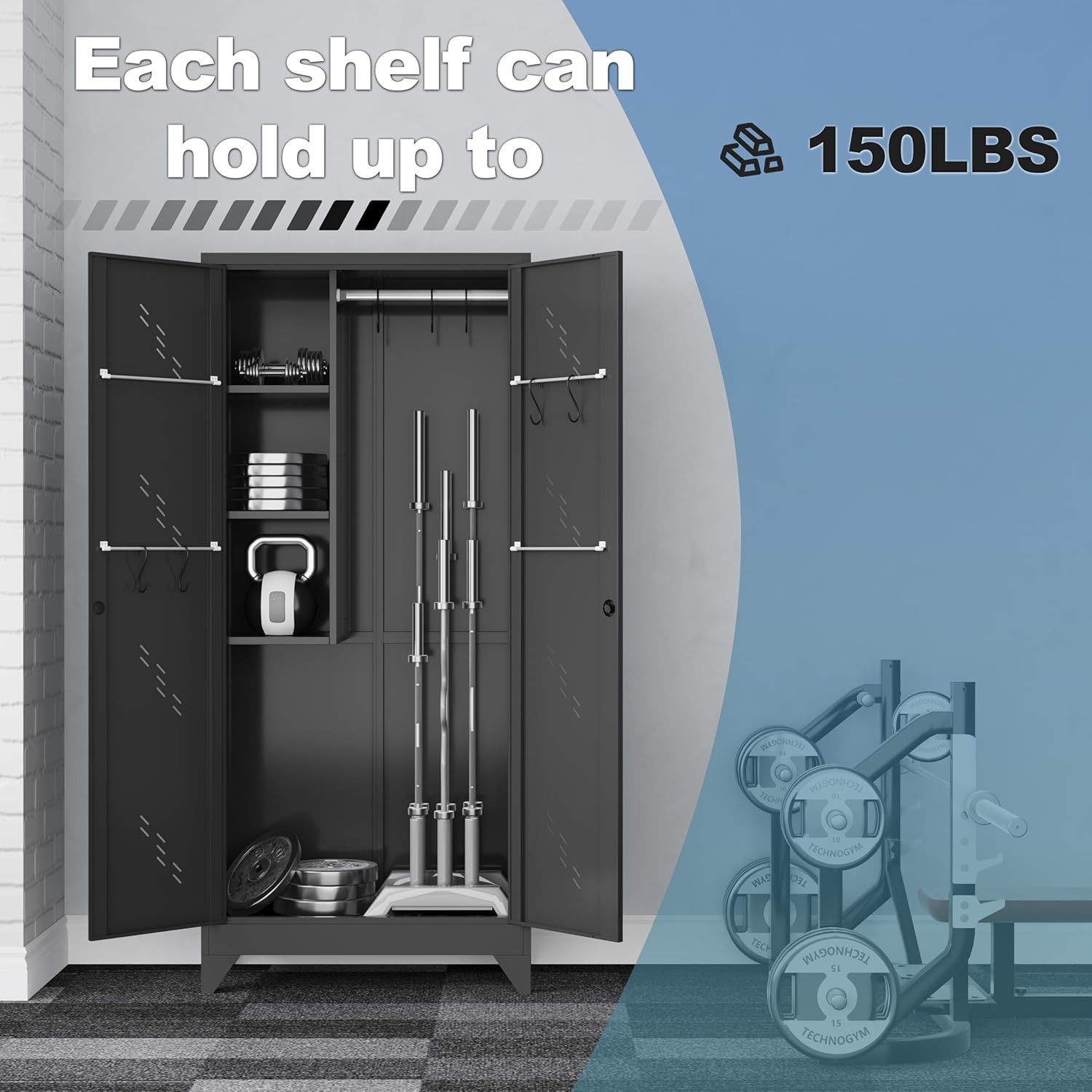 - 【Large Space Design】In addition to being a great choice for storing a large number of items, this tall steel cabinet has an interior design that adds extra space. The lockable storage cabinet with doors comes to hold different-sized items as needed.