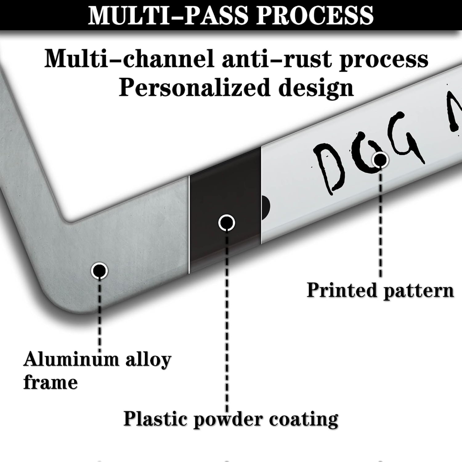 - ALUMINUM FRAME: This License Plate Frame is crafted from high-quality aluminum that is resistant to corrosion, rust, and harsh weather conditions. Its rugged reliability design ensures a long lifespan, making it capable of withstanding car washes and extreme weather, providing you with a reliable and stylish solution for your vehicle.