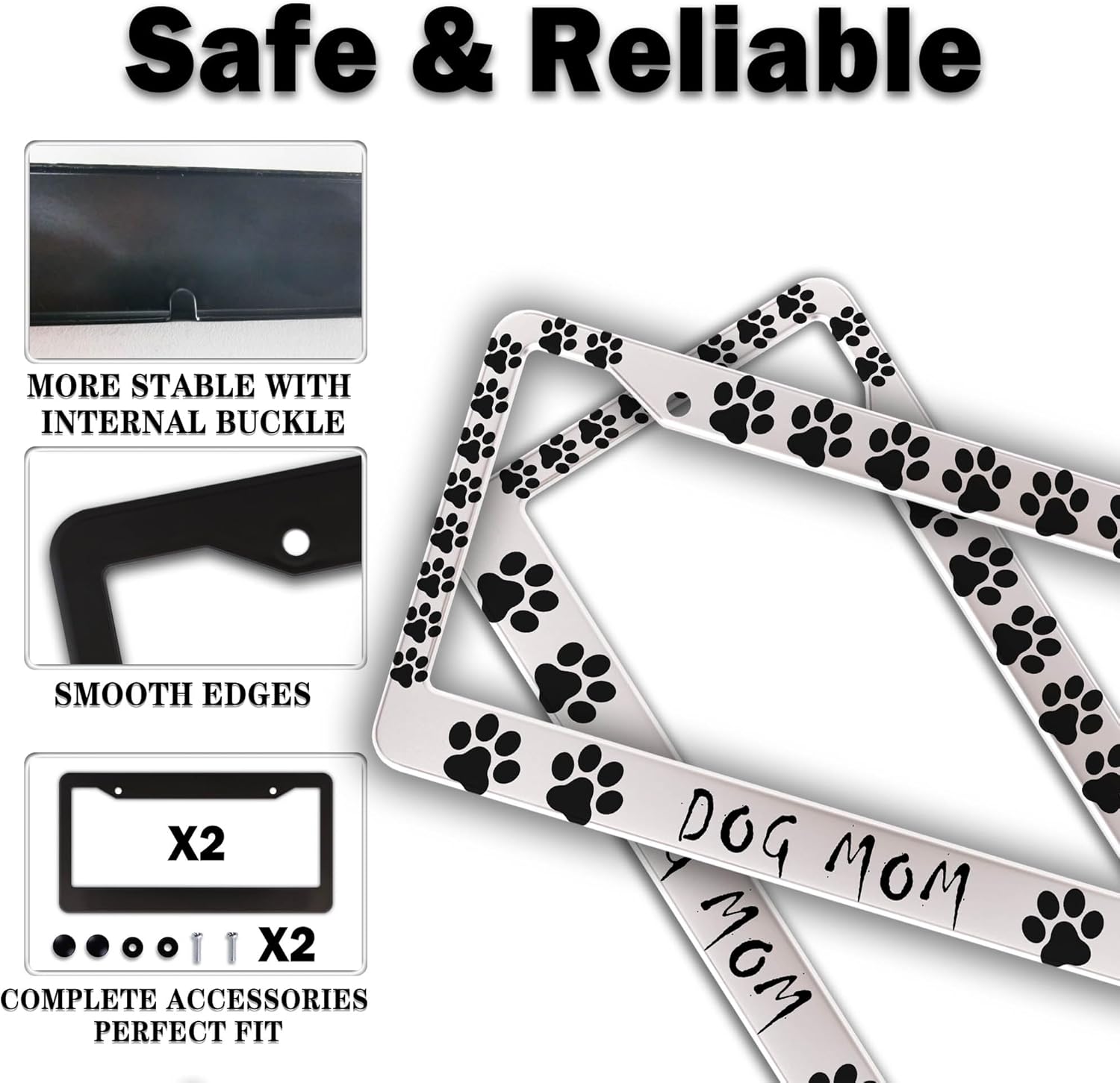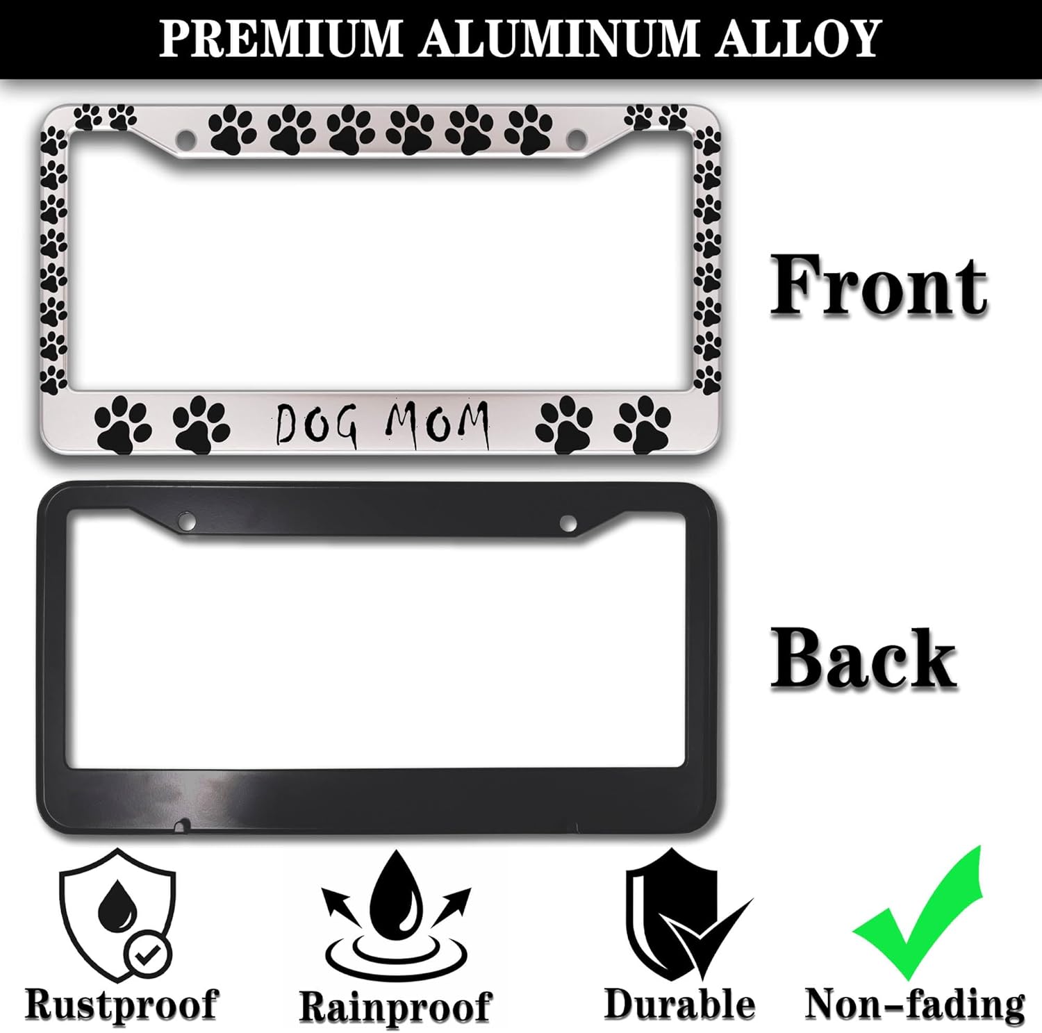 Fun License Plate Frame Cover Black and White License Plate Frames Dog Mom Dog Lover Aluminum Metal Car Accessory 2 Pack with Screw Covers Set
