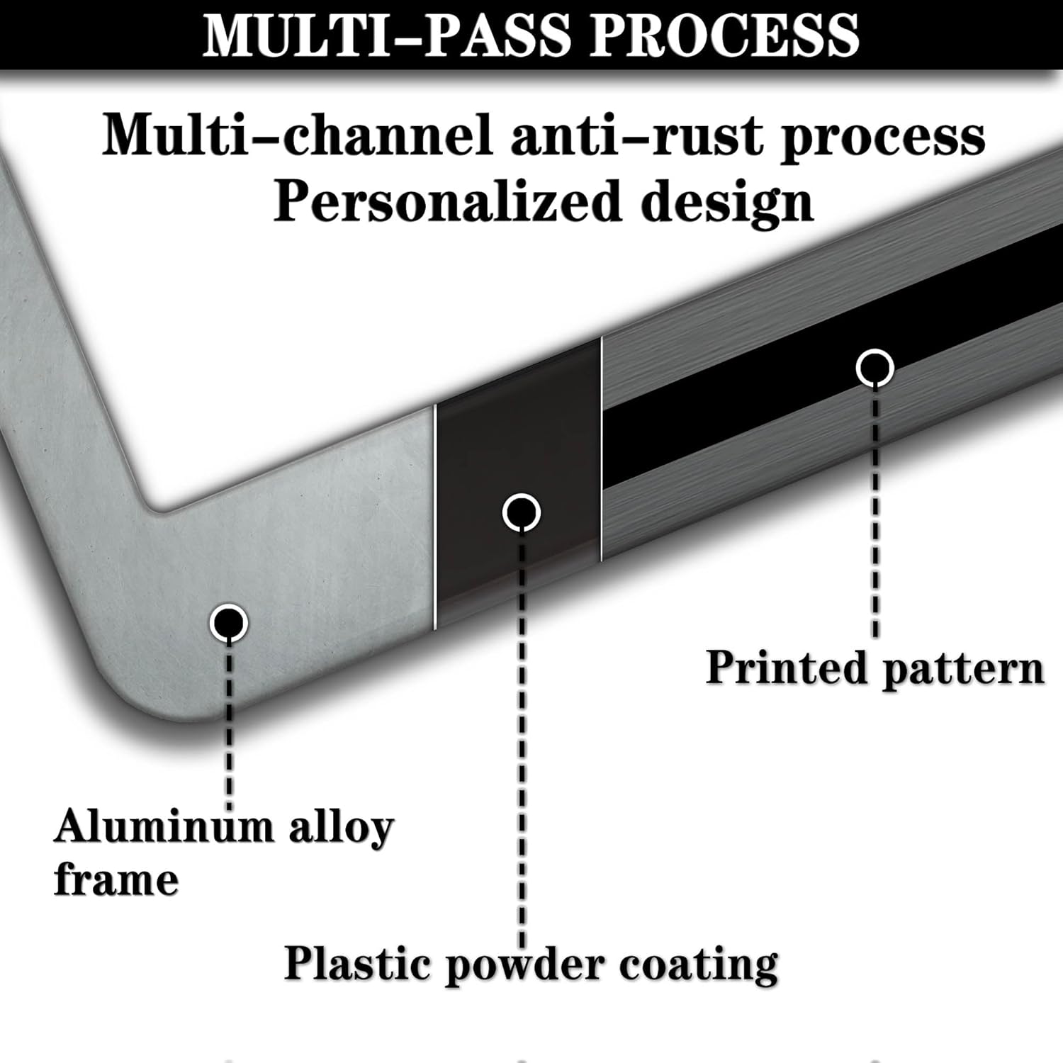 - ALUMINUM FRAME: This License Plate Frame is crafted from high-quality aluminum that is resistant to corrosion, rust, and harsh weather conditions. Its rugged reliability design ensures a long lifespan, making it capable of withstanding car washes and extreme weather, providing you with a reliable and stylish solution for your vehicle.