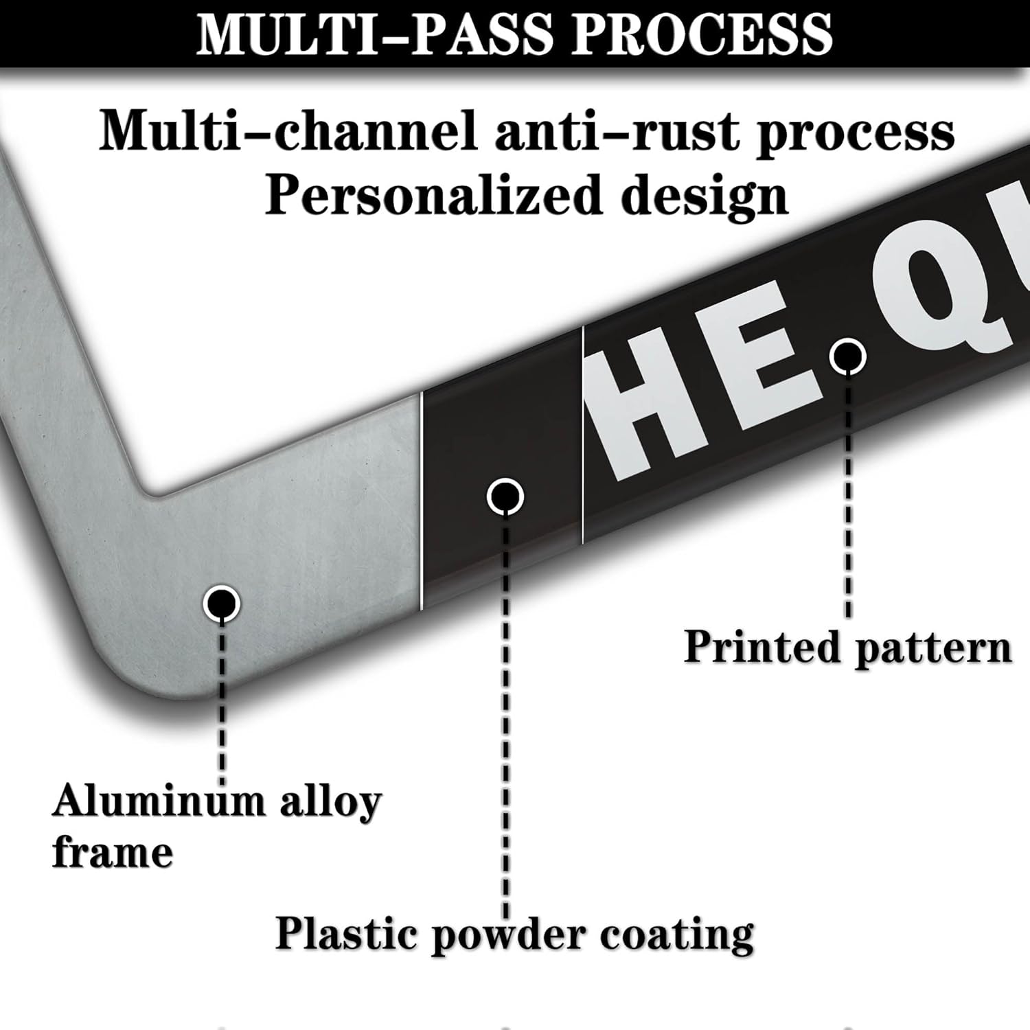 - ALUMINUM FRAME: This License Plate Frame is crafted from high-quality aluminum that is resistant to corrosion, rust, and harsh weather conditions. Its rugged reliability design ensures a long lifespan, making it capable of withstanding car washes and extreme weather, providing you with a reliable and stylish solution for your vehicle.