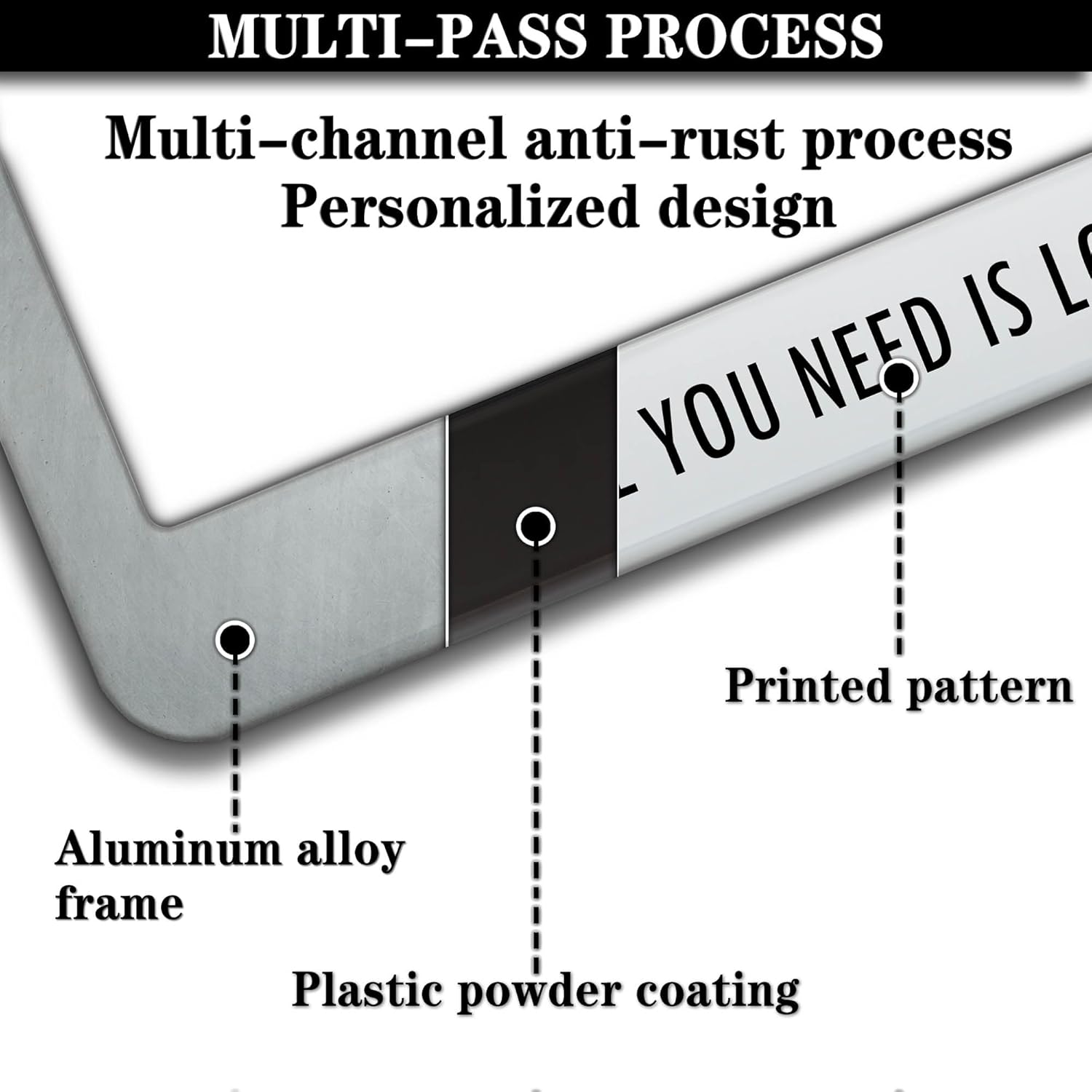License Plate Frames Black, White, and Red License Plate Frame All You Need is Love and a Dog Universal Aluminum Car Accessory 2 Pack with Screw Covers Set
