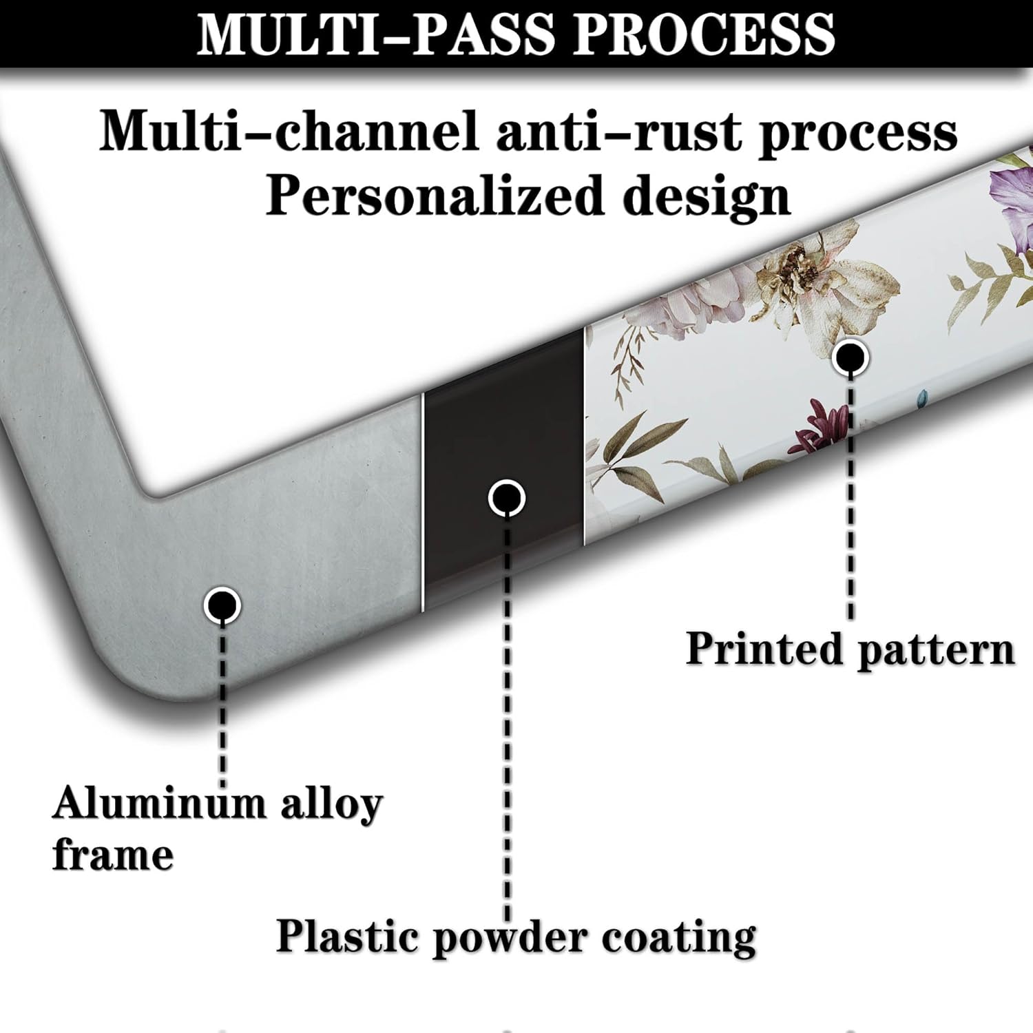 License Plate Bracket for Women Multicolor License Plate Frames for Men Vintage Floral Aluminum Metal Car Accessory 2 Pack with Screw Covers Set