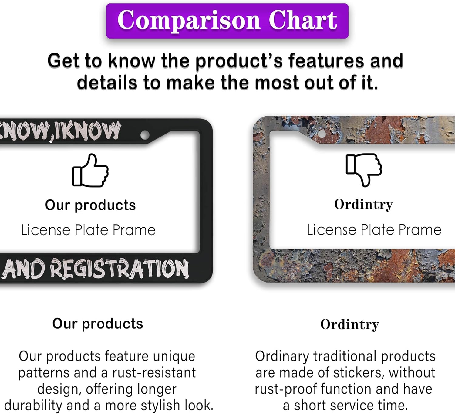- FUNNY DESIGN: Featuring a unique and customized design, this license plate frame creates an eye-catching and bold statement for your vehicle. Not only does it add a touch of personality to your car, but it also makes for a great holiday gift, souvenir, or decorative piece for family, friends, and colleagues. Elevate your vehicle's style while sharing a laugh!