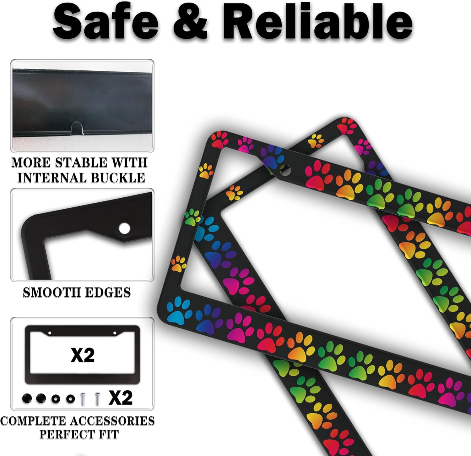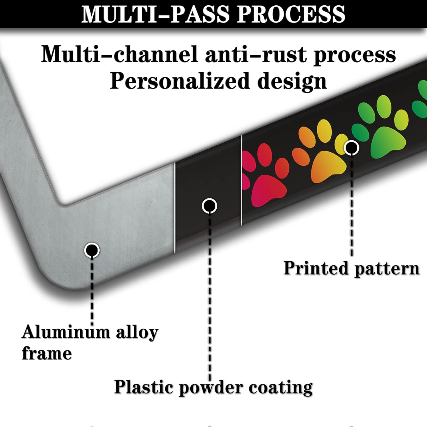 License Plate Holder Rainbow License Plate Frames Colors of The Rainbow Dog Paw Universal Aluminum Car Accessory 2 Pack with Screw Covers Set