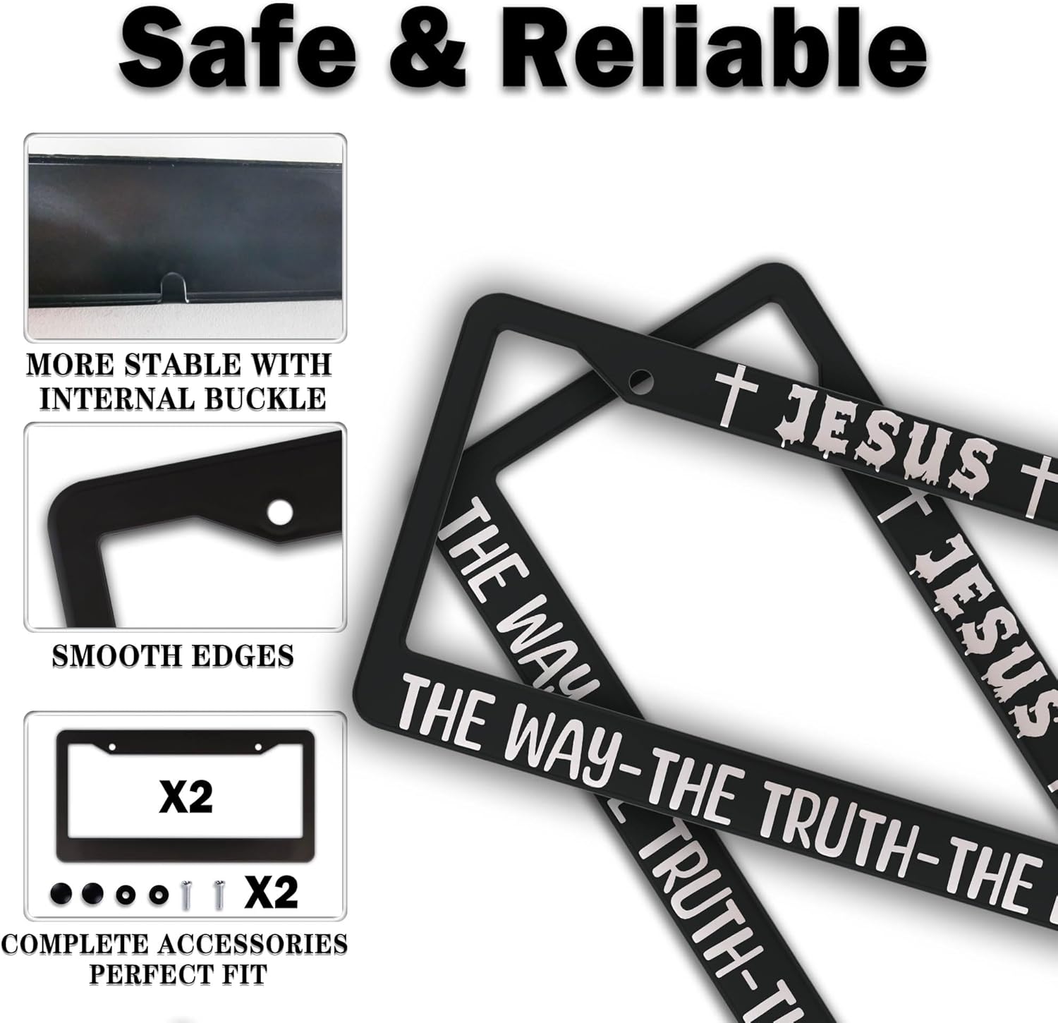 License Plate Frame Black and White Front License Plate Bracket Jesus The Way The Truth The Life Aluminum Metal Car Accessory 2 Pack with Screw Covers Set