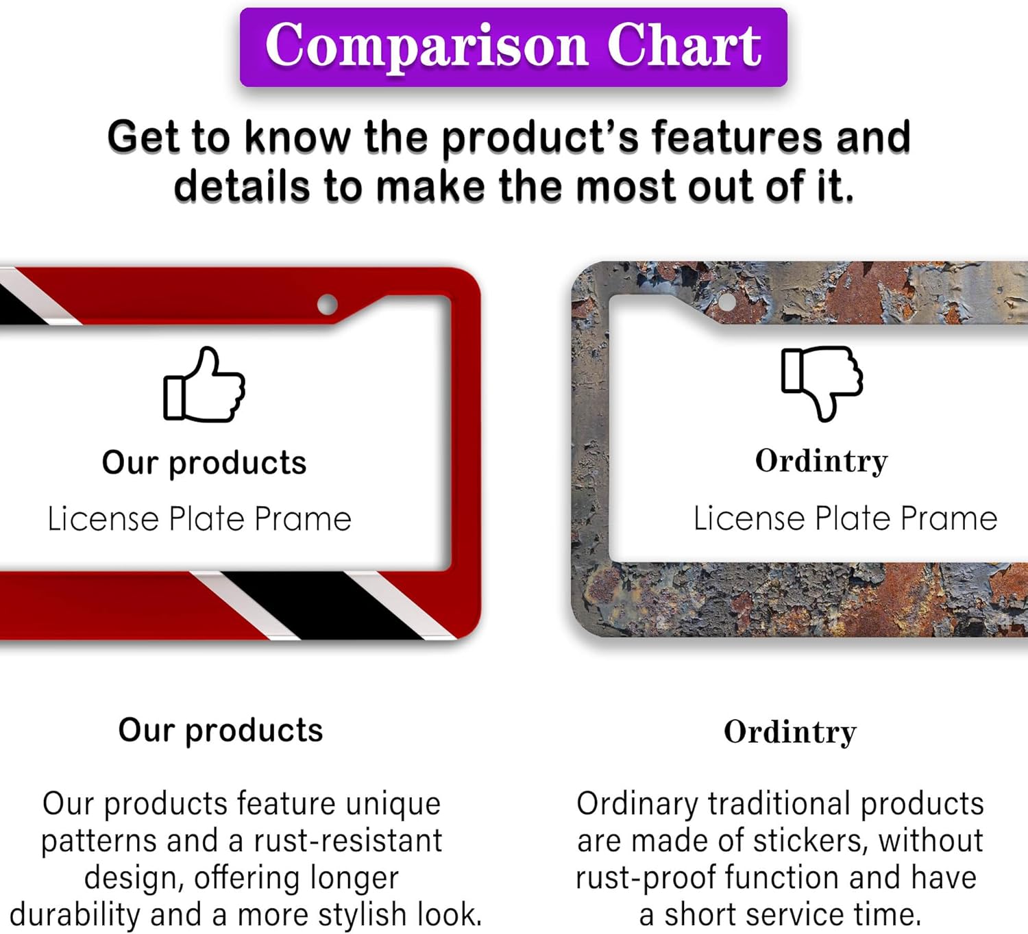 Car Plate Frame Red, Black, White License Plate Frames Trinidad and Tobago Flag Aluminum Metal Car Accessory 2 Pack with Screw Covers Set