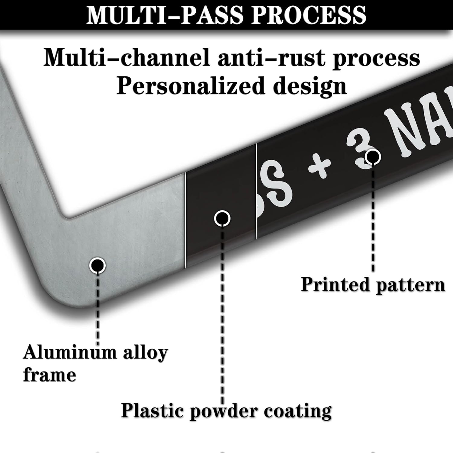 - FUNNY DESIGN: Featuring a unique and customized design, this license plate frame creates an eye-catching and bold statement for your vehicle. Not only does it add a touch of personality to your car, but it also makes for a great holiday gift, souvenir, or decorative piece for family, friends, and colleagues. Elevate your vehicle's style while sharing a laugh!