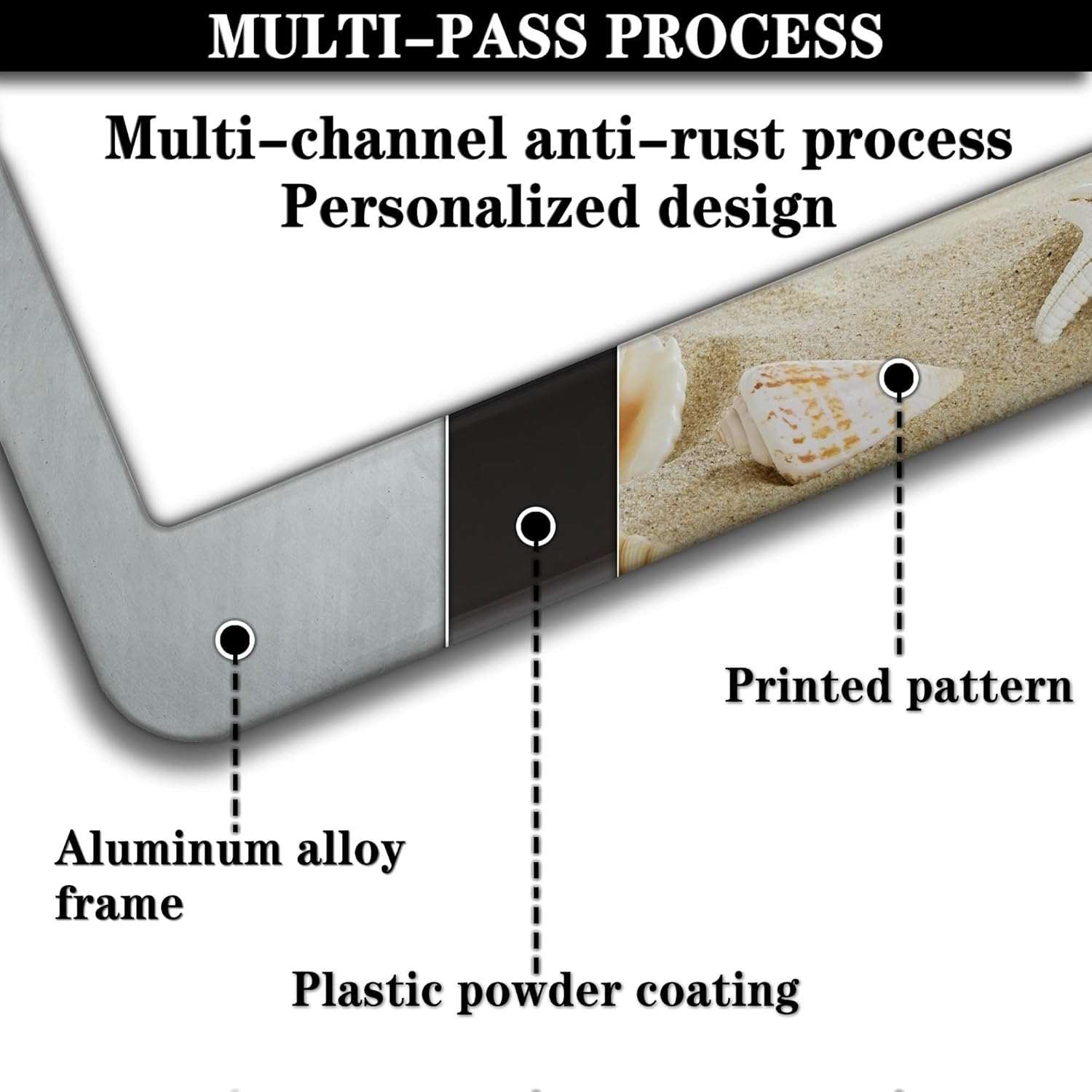 Front License Plate Bracket Multicolor License Plate Frames Beach Ocean Universal Aluminum Car Accessory 2 Pack with Screw Covers Set