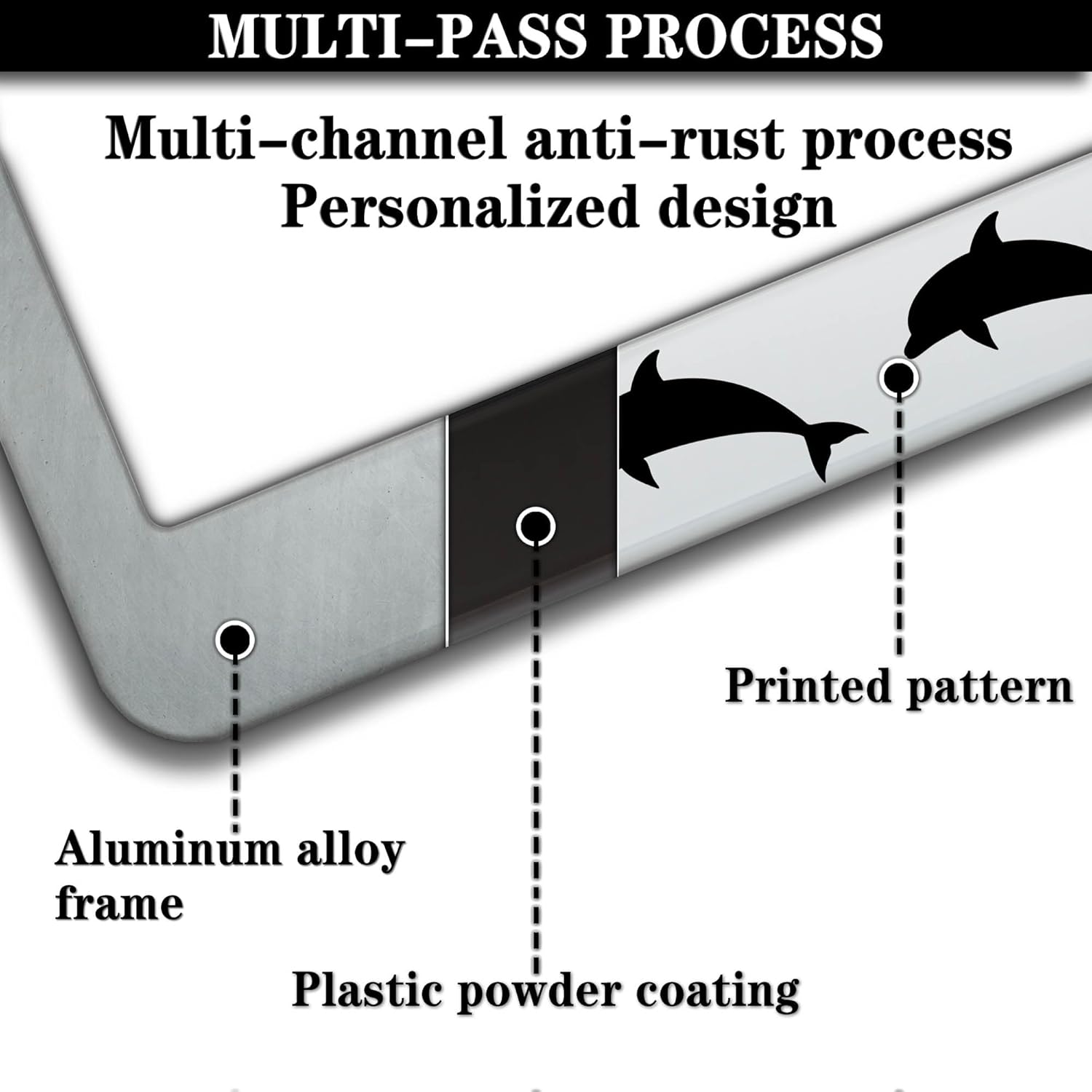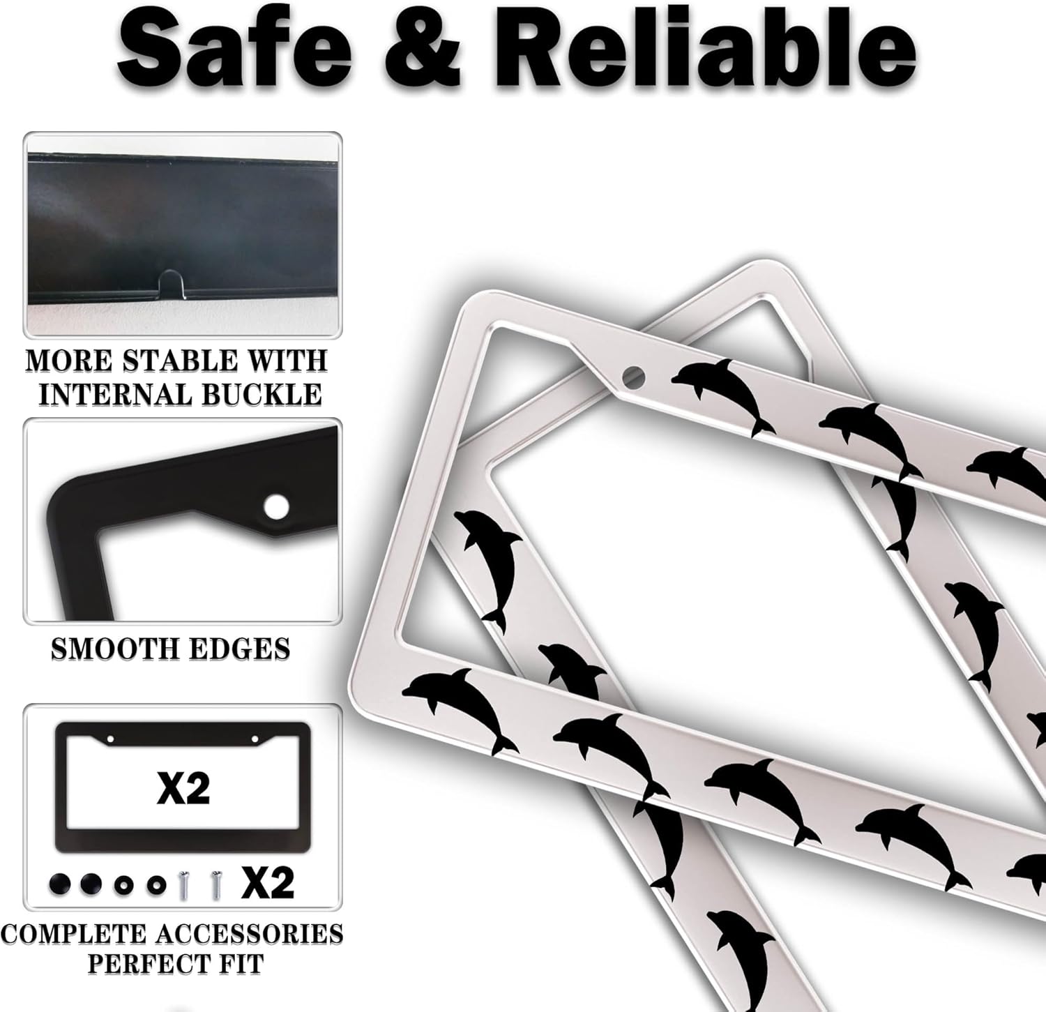License Plate Frames for Women Black and White License Plate Protector for Men Dolphin Universal Aluminum Car Accessory 2 Pack with Screw Covers Set