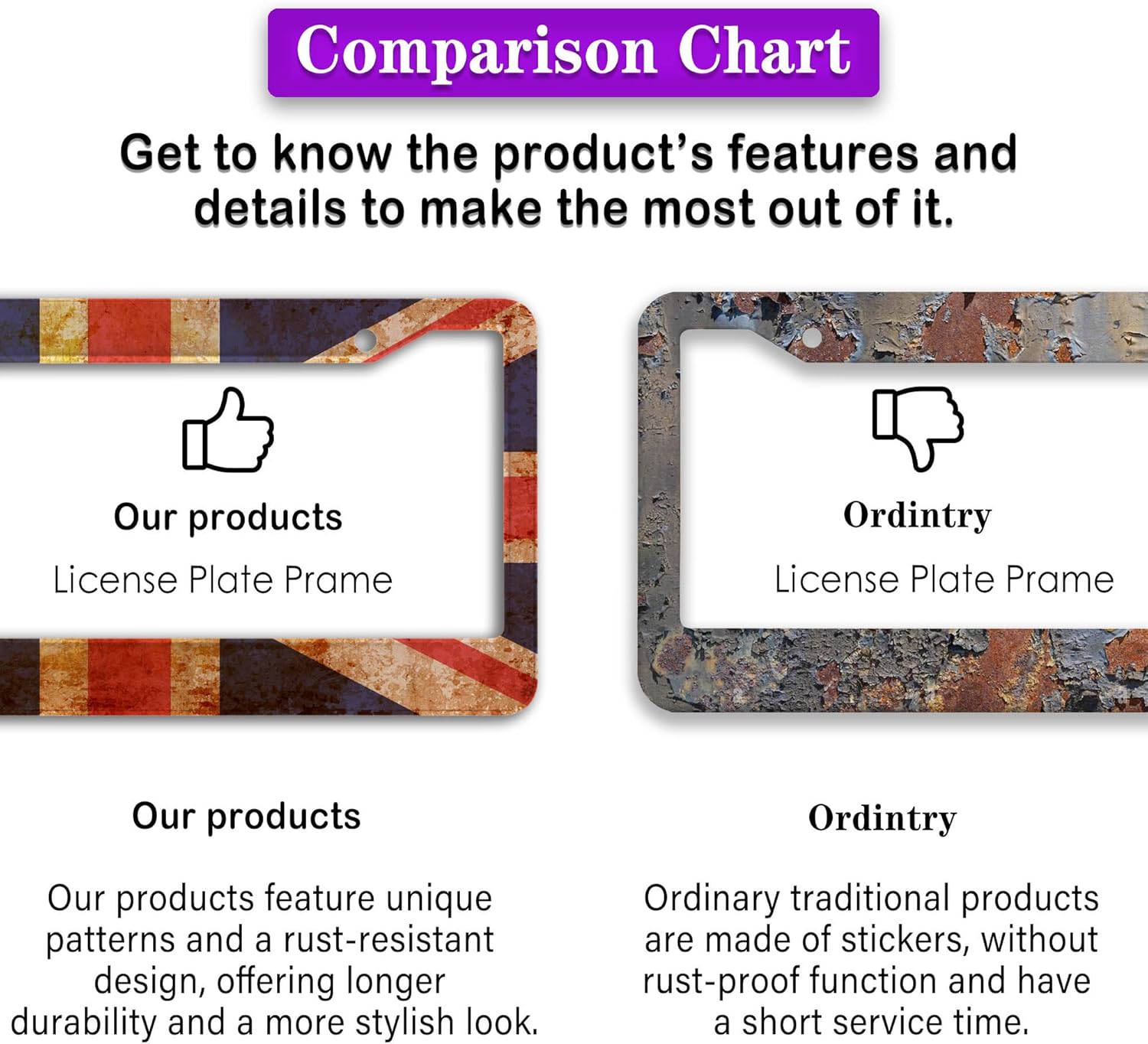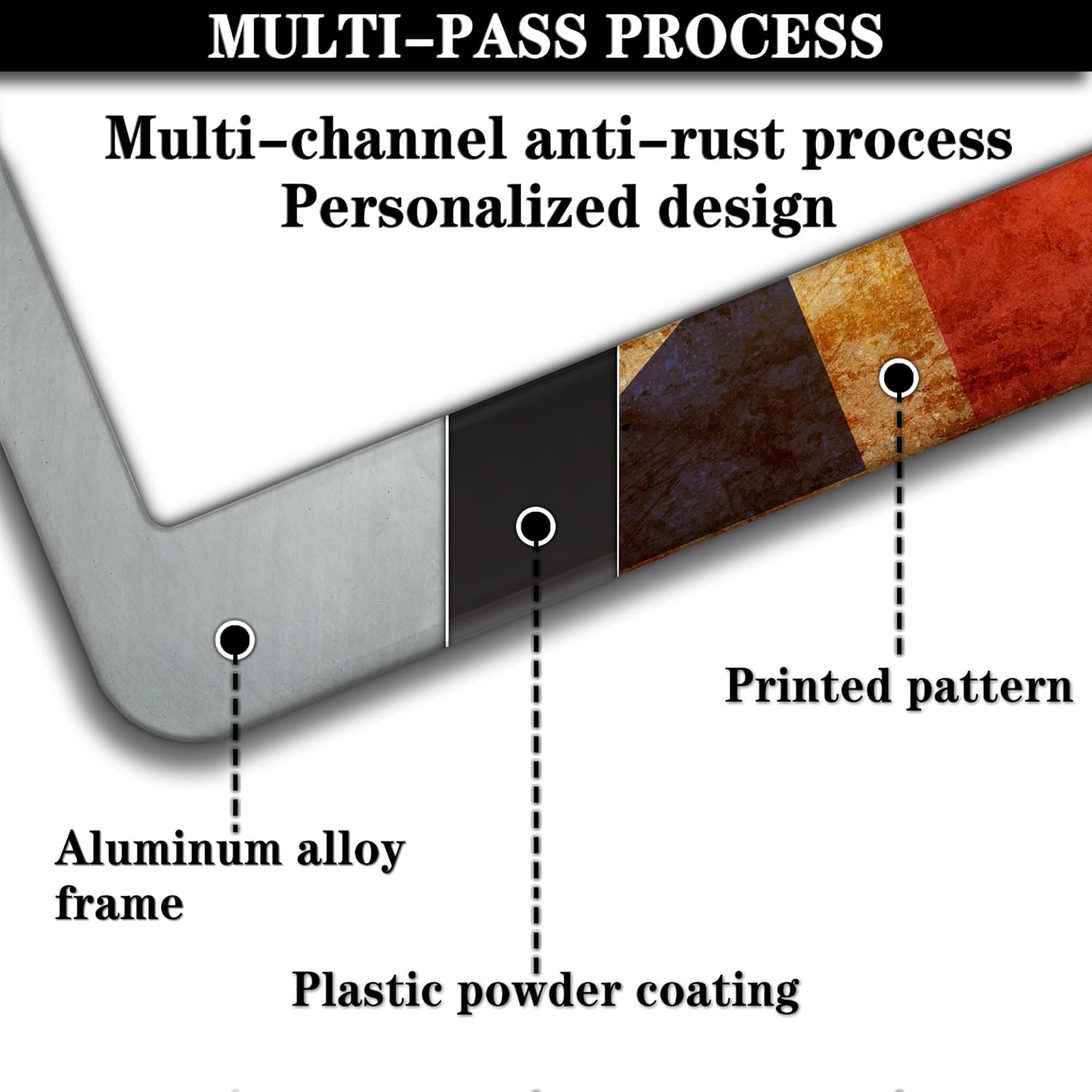 - ALUMINUM FRAME: This License Plate Frame is crafted from high-quality aluminum that is resistant to corrosion, rust, and harsh weather conditions. Its rugged reliability design ensures a long lifespan, making it capable of withstanding car washes and extreme weather, providing you with a reliable and stylish solution for your vehicle.