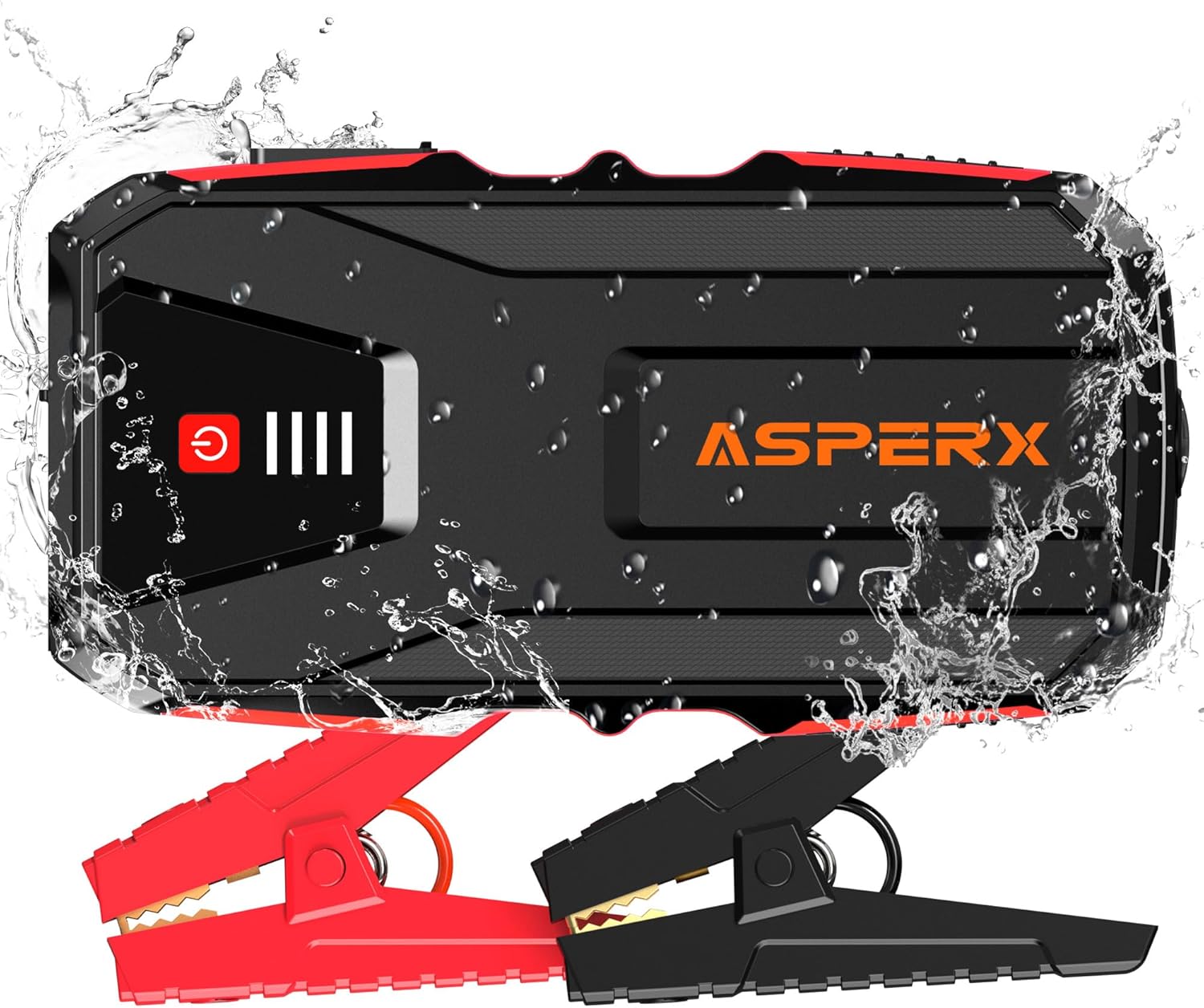 - 【3000A Jump Starter】 The ASPERX 3000A car battery jump starter can effortlessly jump-start 10L gas or 8.0L diesel engines in mere seconds. When the battery has sufficient charge, the car jump starter can quickly provide enough cranking amperage to the car battery, ensuring that the vehicle starts up within a short period of time.Even if your battery's voltage dips too low (below 9V), simply pressing the "BOOST" button will get your engine running again. Widely supports various car models.