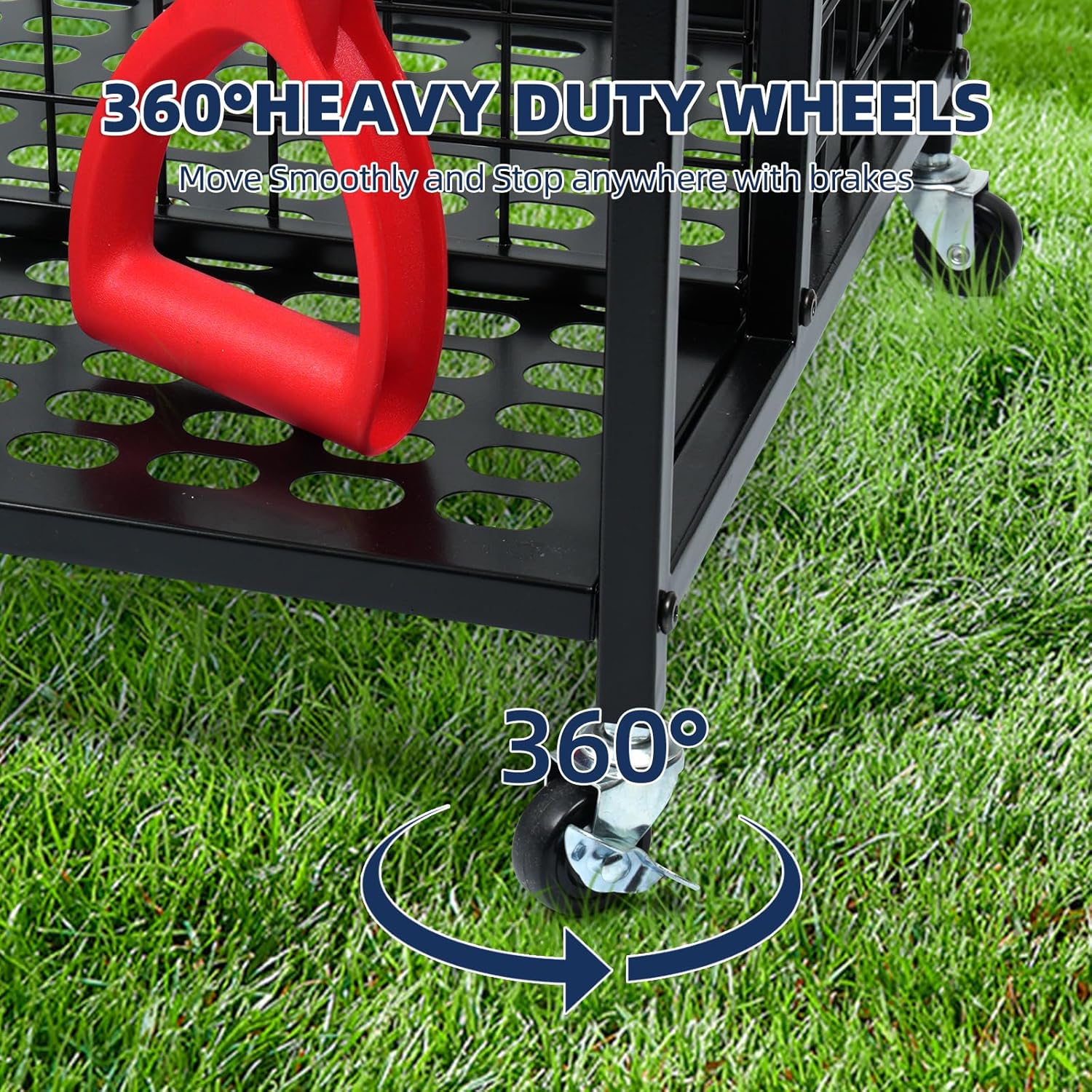 - WIDELY USED - Thanks to its functional design and sturdy structure, the garden tool storage is equipped with four sturdy metal wheels, you can easily move the yard tool organizer anywhere without using much power. And two of the wheels have brakes, you can stop it anywhere, perfectly used in garages, gardens, sheds, and backyards.