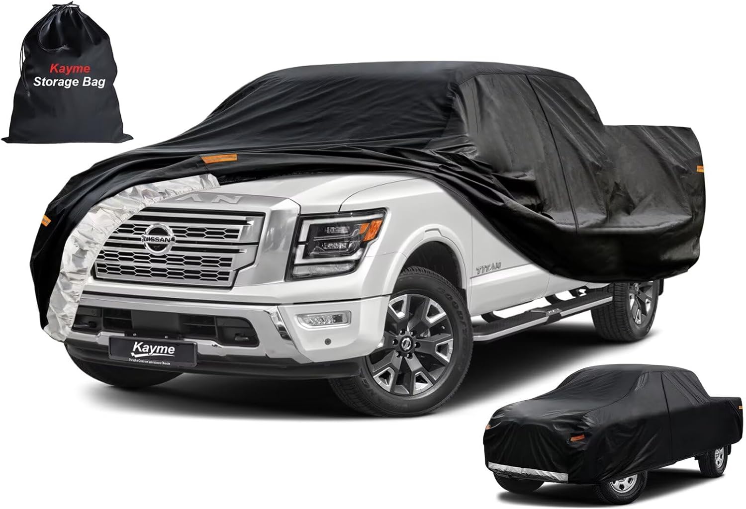 Kayme Truck Cover Custom Fit Nissan Titan(2015-2025) Crew Cab Short Bed. Full Exterior Heavy Duty Outdoor Pickup Truck Car Cover Waterproof All Weather.Car Tarp for Wind Sun Dust Protection.Black