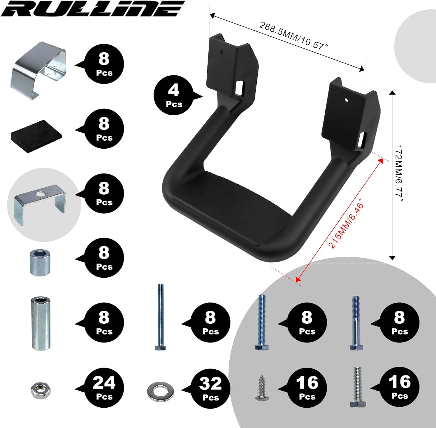 RULLINE Black Powder Coated Truck Side Step Set - 4 Pieces (1 Pair) with Mounting Brackets - Compatible with Chevy (Chevrolet), Ford, Toyota, GMC, Dodge RAM, and Jeep Trucks