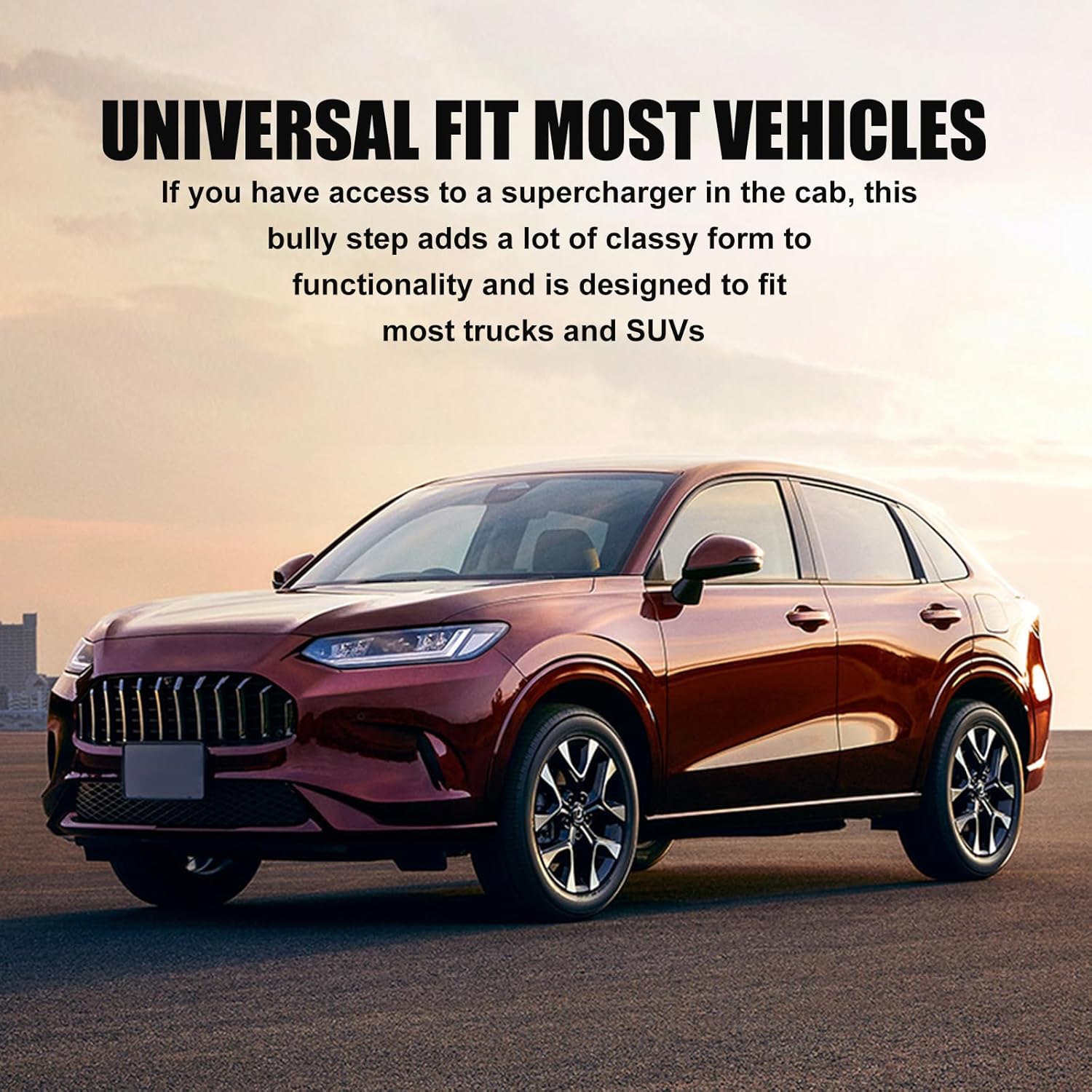 - Universal Fit: Designed to fit most trucks and SUVs, these bully steps add both rugged sophistication and practical functionality to your vehicle, offering an elegant form that complements their universal fit.