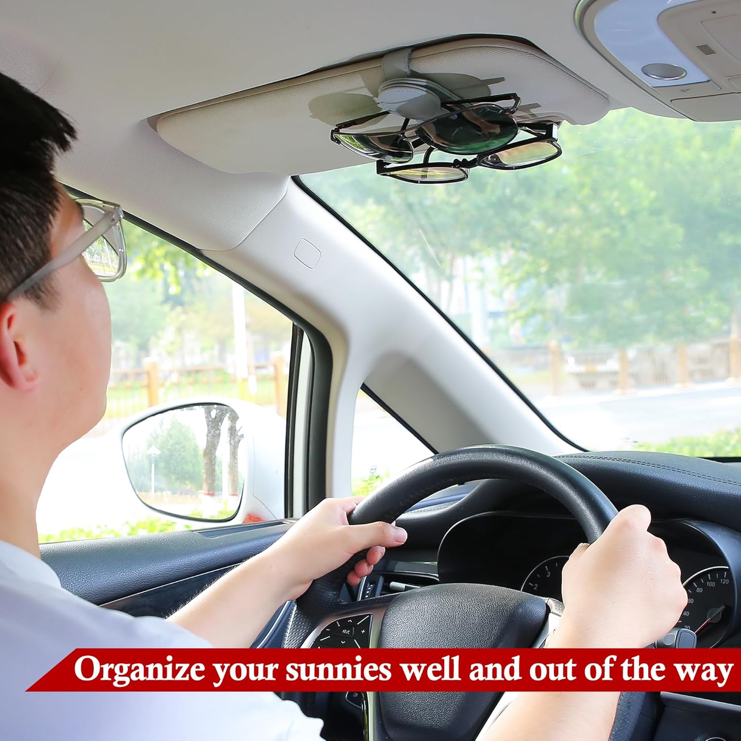 - Double Storage: This design can store 2 pairs of eyeglasses at once, fitting most types of eyewear, including sunglasses, prescription glasses, and reading glasses; enough space between clips to prevent from scratching each other for extra safety