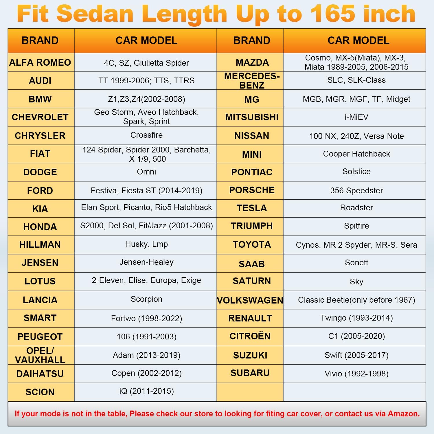 - Coverage : Full exterior coverage for sedans (up to 165 inches in length)