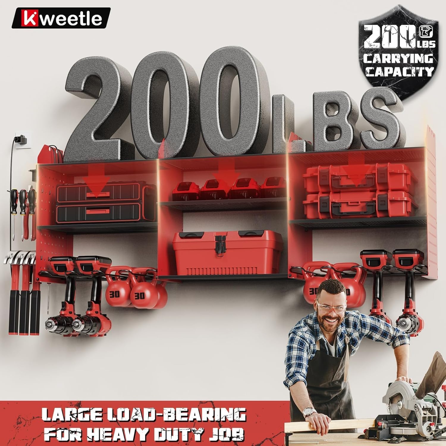 - 【MAXIMUM WEIGHT UP TO 200 LBS】 The power tool organizer wall mount is crafted with a strong alloy frame and double-layered metal plates, ensuring long-lasting durability and it has a weight capacity of up to 200lbs It serves as a versatile and dependable holder for a wide range of tools and accessories, making it an essential addition to any workspace.