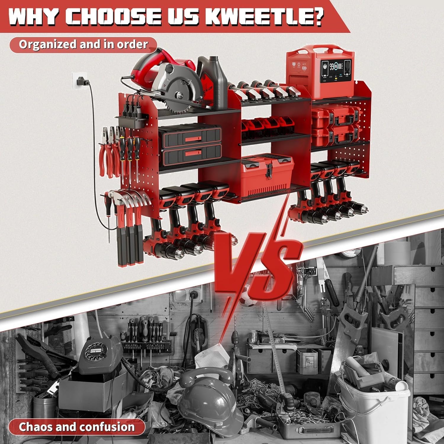 - 【EXCELLENT MATERIAL】This power tool organizer is made of thickened, heavy-duty steel metal with a durable black powder coat finish to prevent rust, it will stay in brand new condition whether it's in a wet basement or dusty and humid garage, ensuring that the tool rack will have a lifetime of service life and become a reliable companion in your workplace.