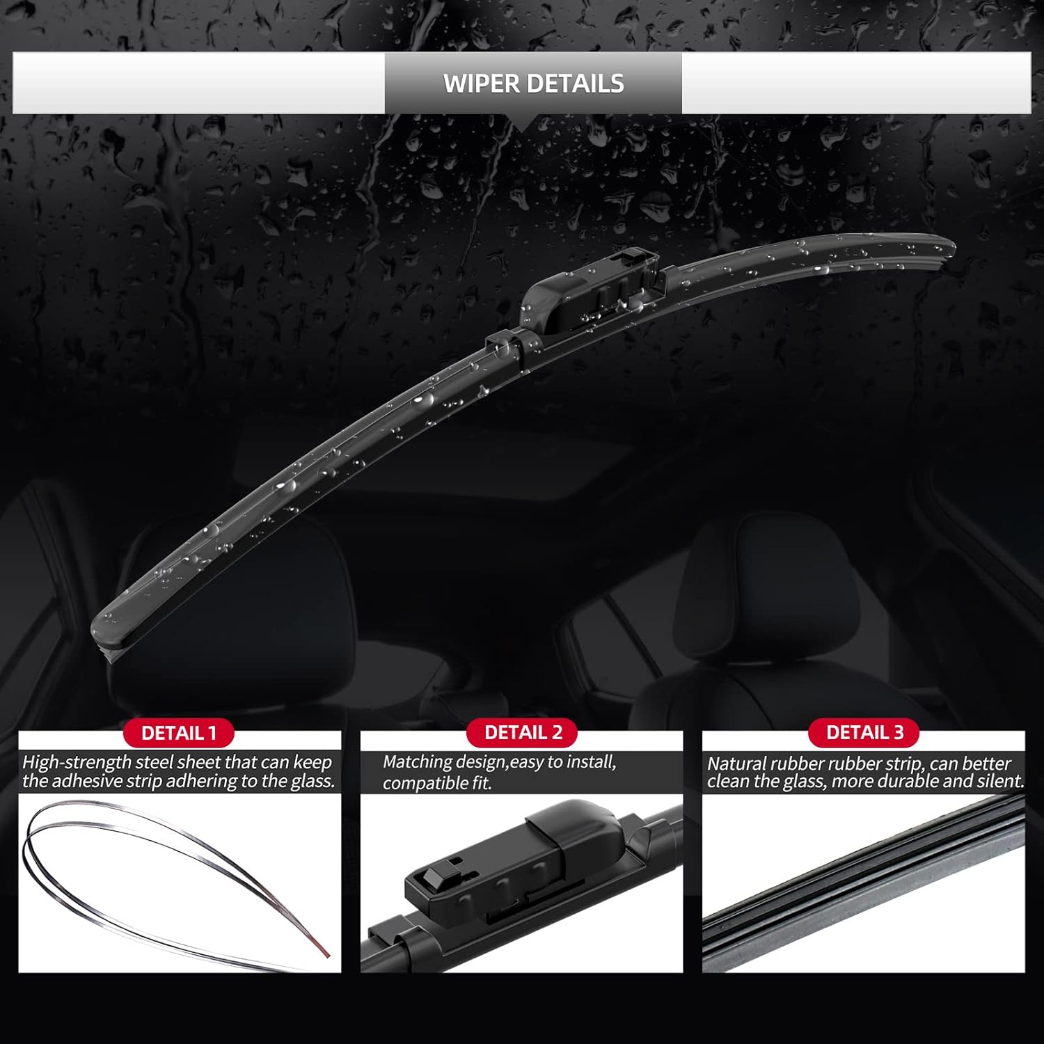 - Durable and Long-Lasting: Built with high-quality materials to resist wear and tear. These windshield wiper blades offer reliable performance over time