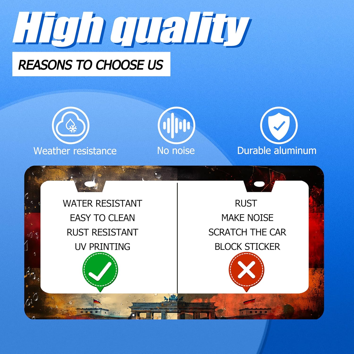 - Design:Use Advanced digital printing Protects license plate frames from Whether it's a car wash, heavy rain or hot weather, it still looks brand new,Let your car still be unique and stylish while driving on the road