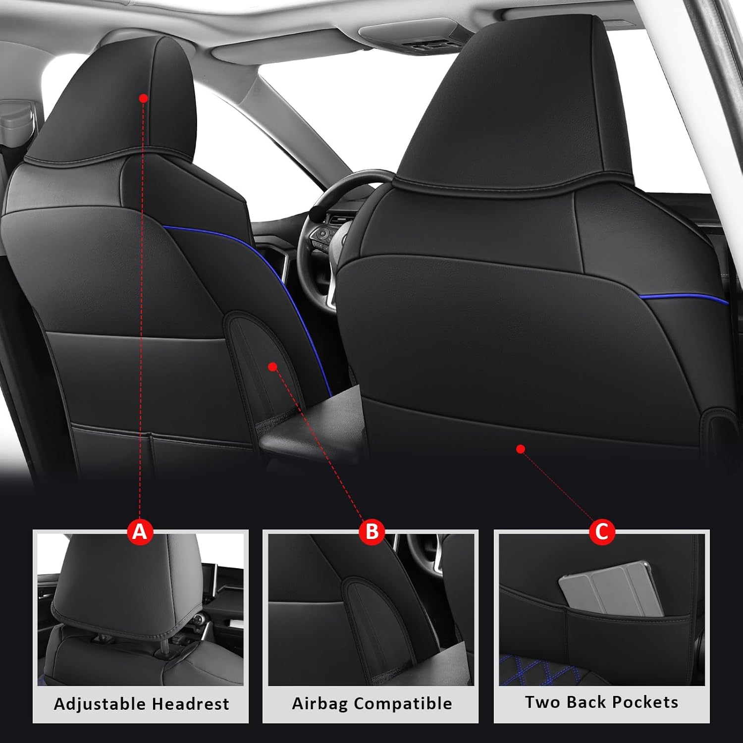 - 【Airbag-Safe & Functional】Seat cover for toyota rav4 Engineered with precision-cut perforations for side airbag deployment. Driver-side includes bonus storage pocket for phones/tolls – because convenience shouldn't compromise safety. Our rav4 seat cover has been upgraded to a detachable, and the side straps for fixing are almost hidden. The airbag has enough room to stretch and will never be blocked.