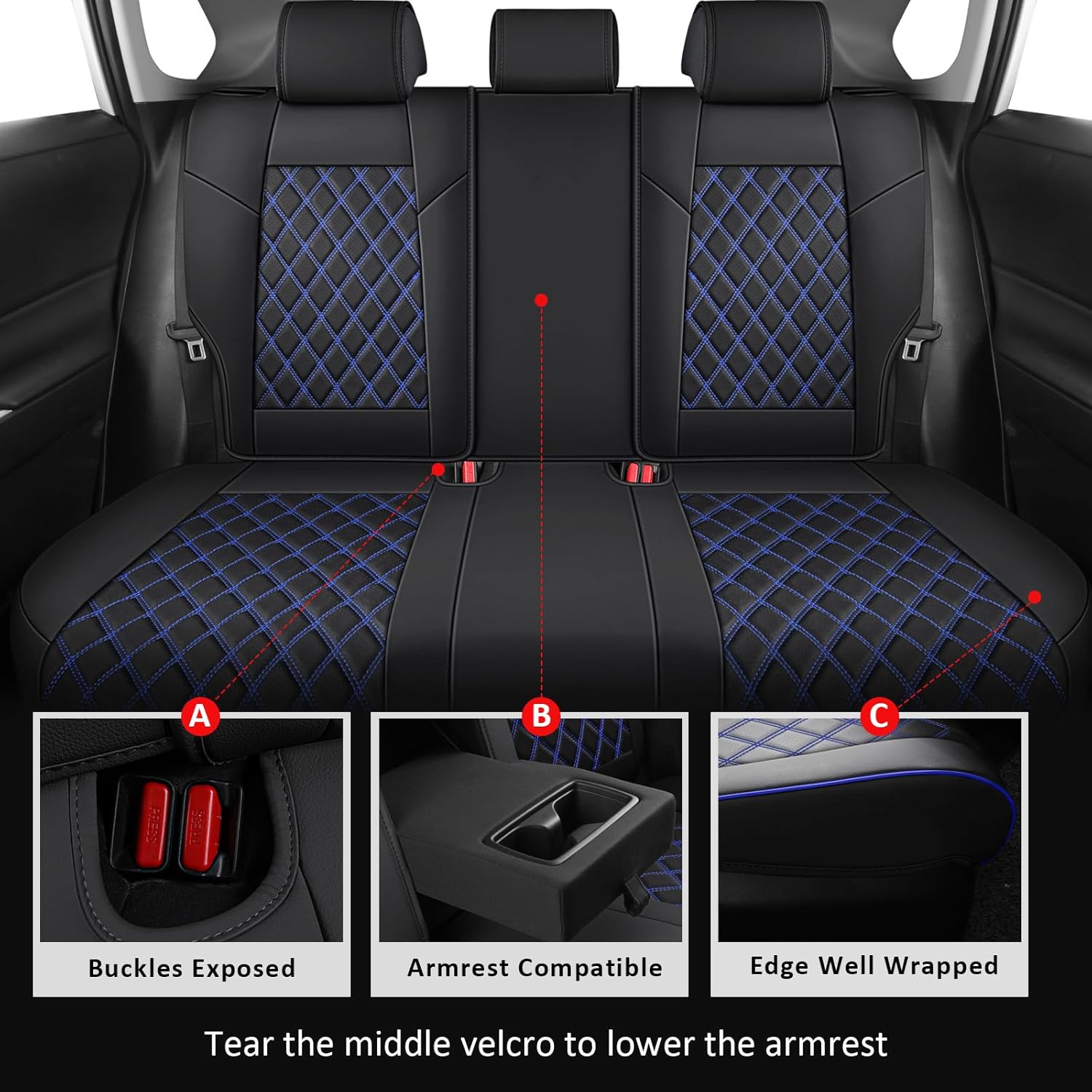 MIROZO Rav4 Seat Covers Full Set,Faux Leather Car Seat Covers Compatible with 2019-2025 Toyota RAV4 Hybrid LE XLE Limited Seat Cover RAV4 Hybrid(Black and Blue,Non XSE&2022-2025 SE Hybrid)